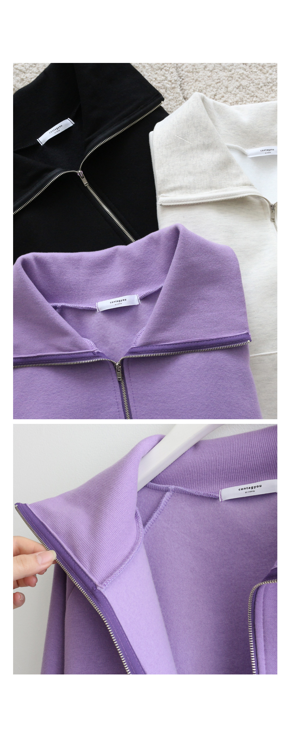 따숨' [특별한기모] 자체제작/ 솔리드 하이넥 집업 #110325