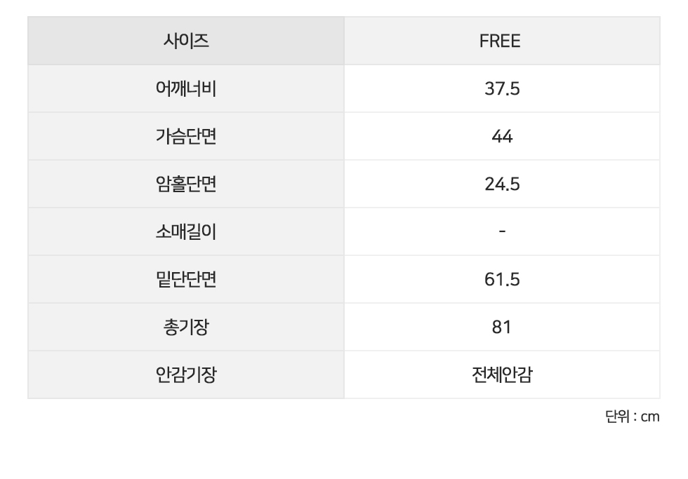 FREE 어깨단면37.5 가슴단면44 암홀단면24.5