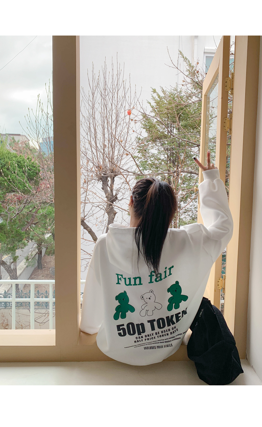 Fun printing brushed hoodie