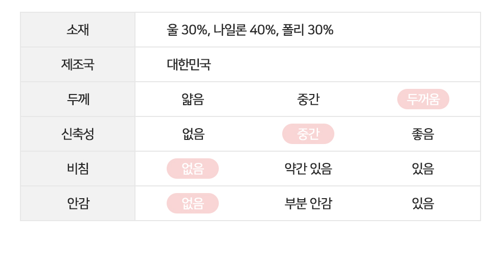 울30%, 나일론 40%, 폴리30%