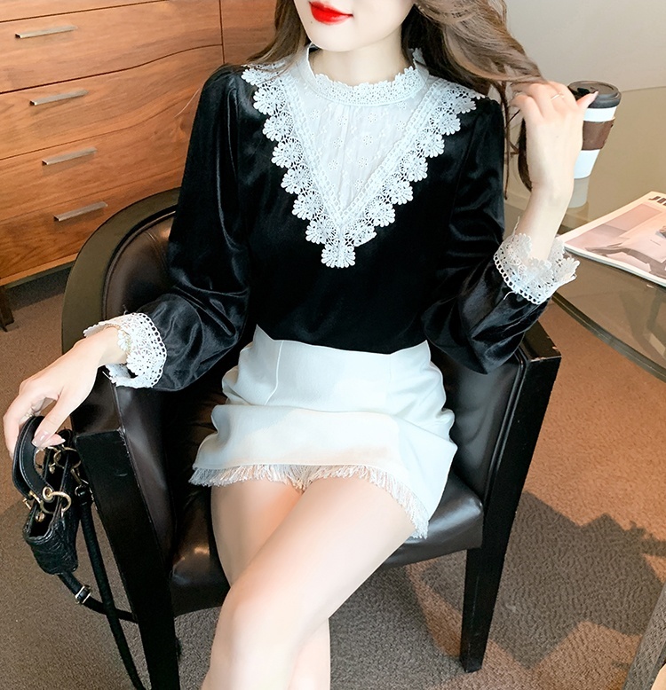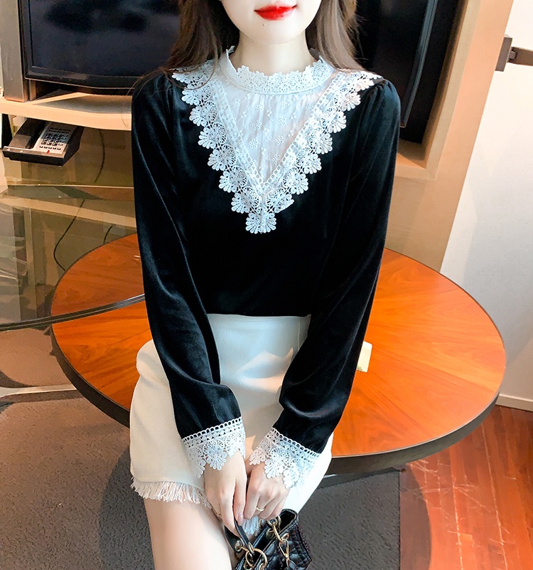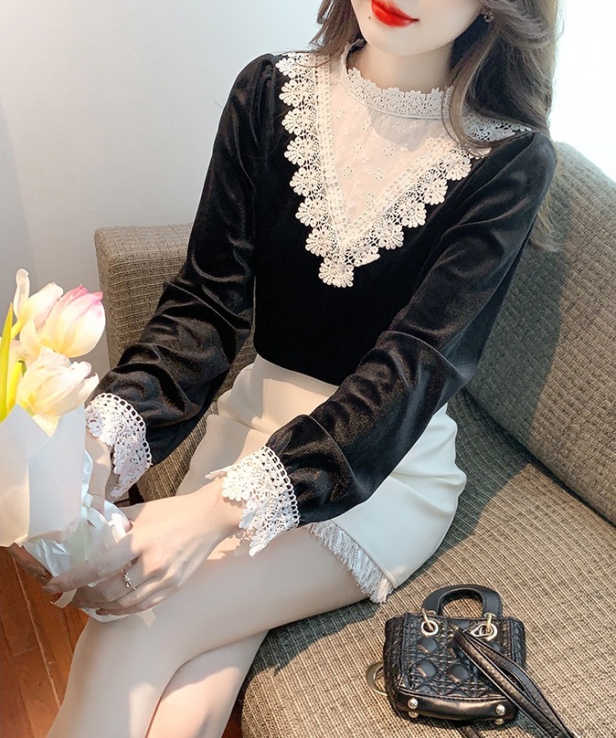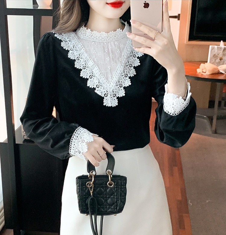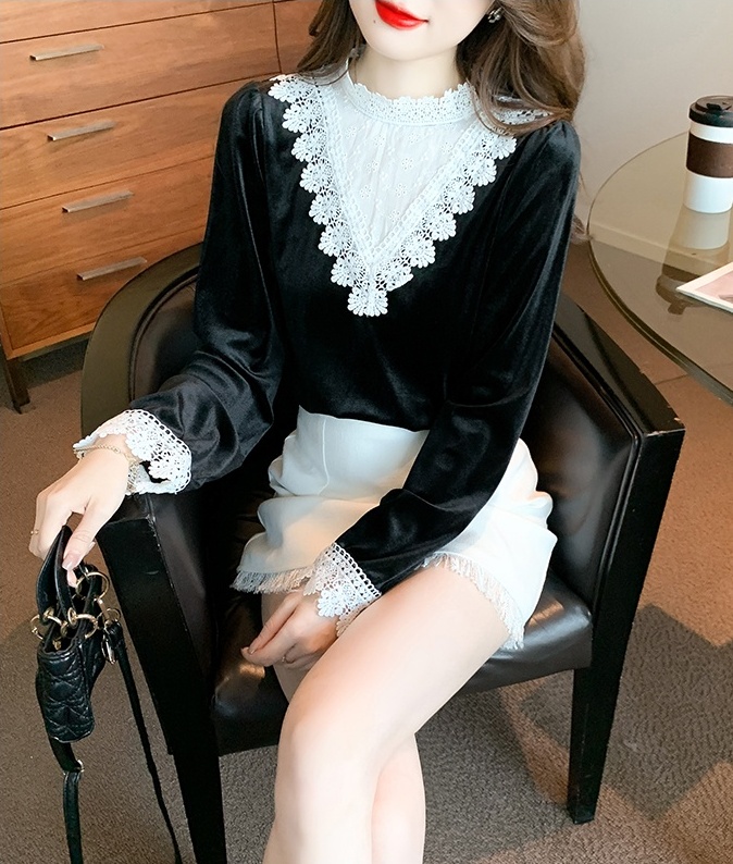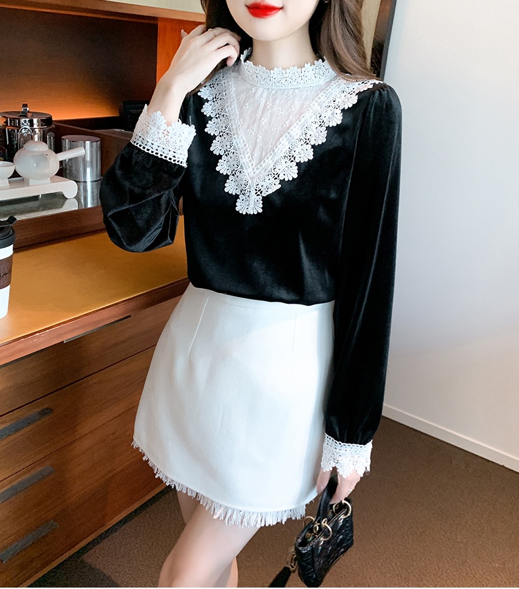 Domestic product / Jenna lace velvet top