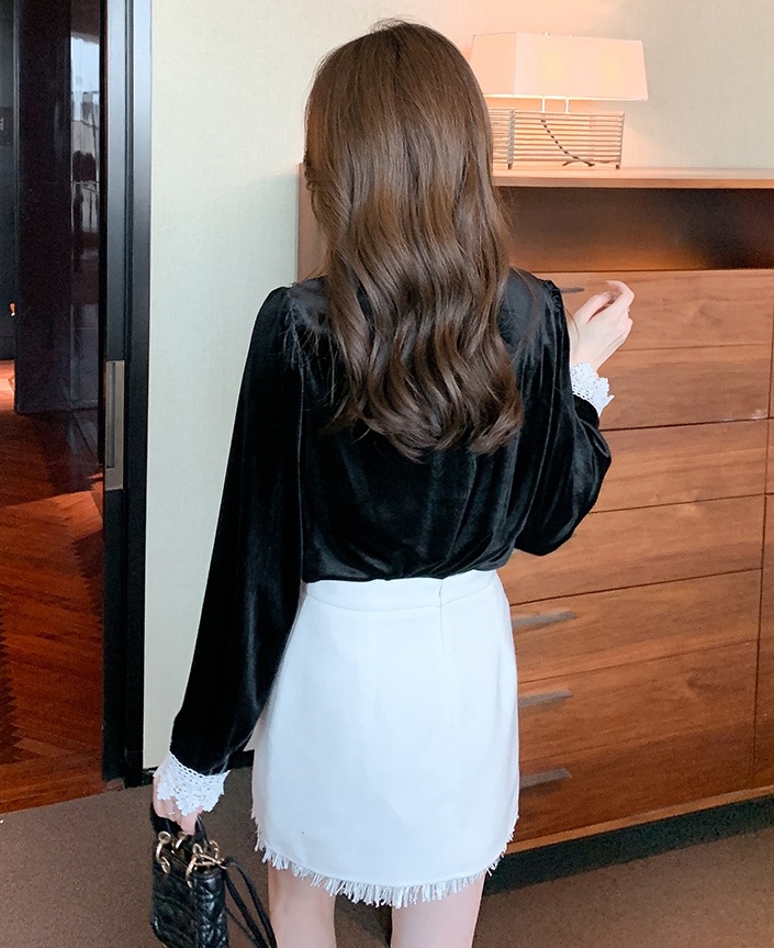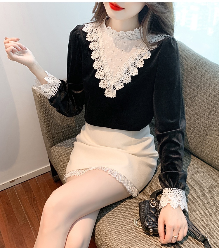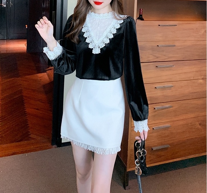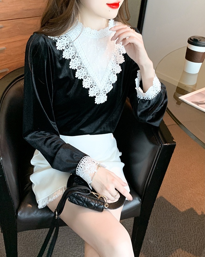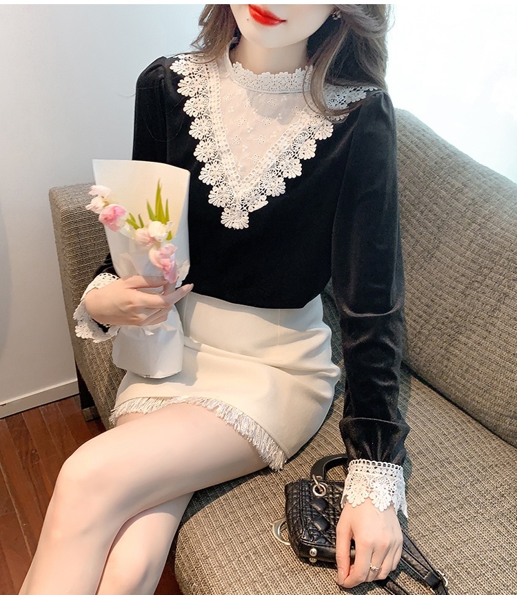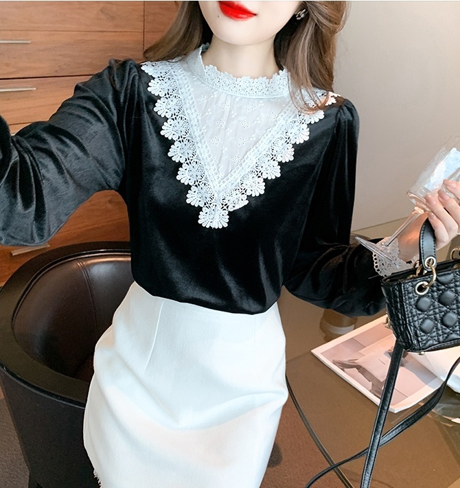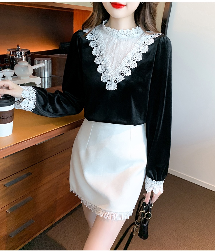 Domestic product / Jenna lace velvet top