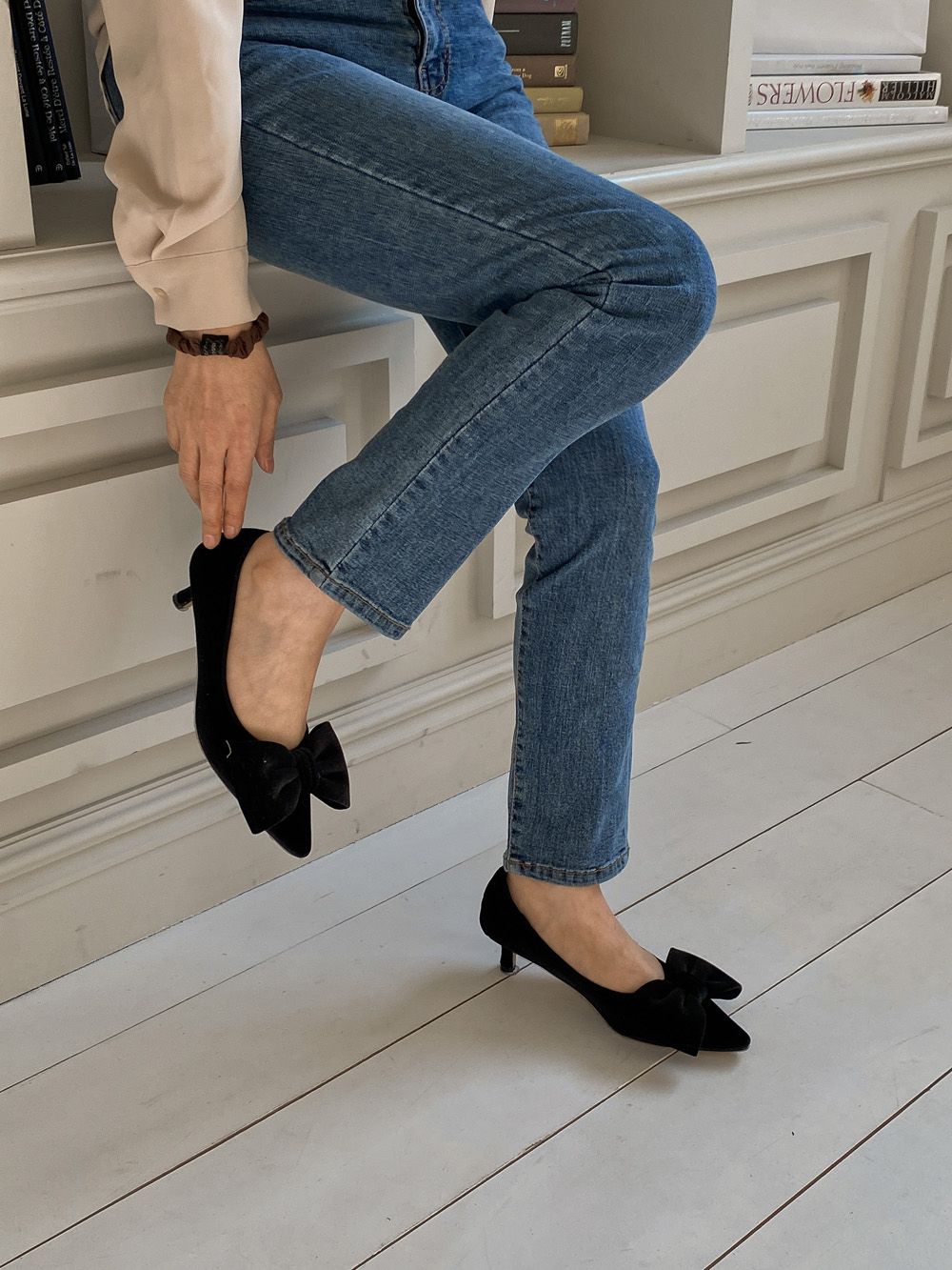 #리본 벨벳 미들힐