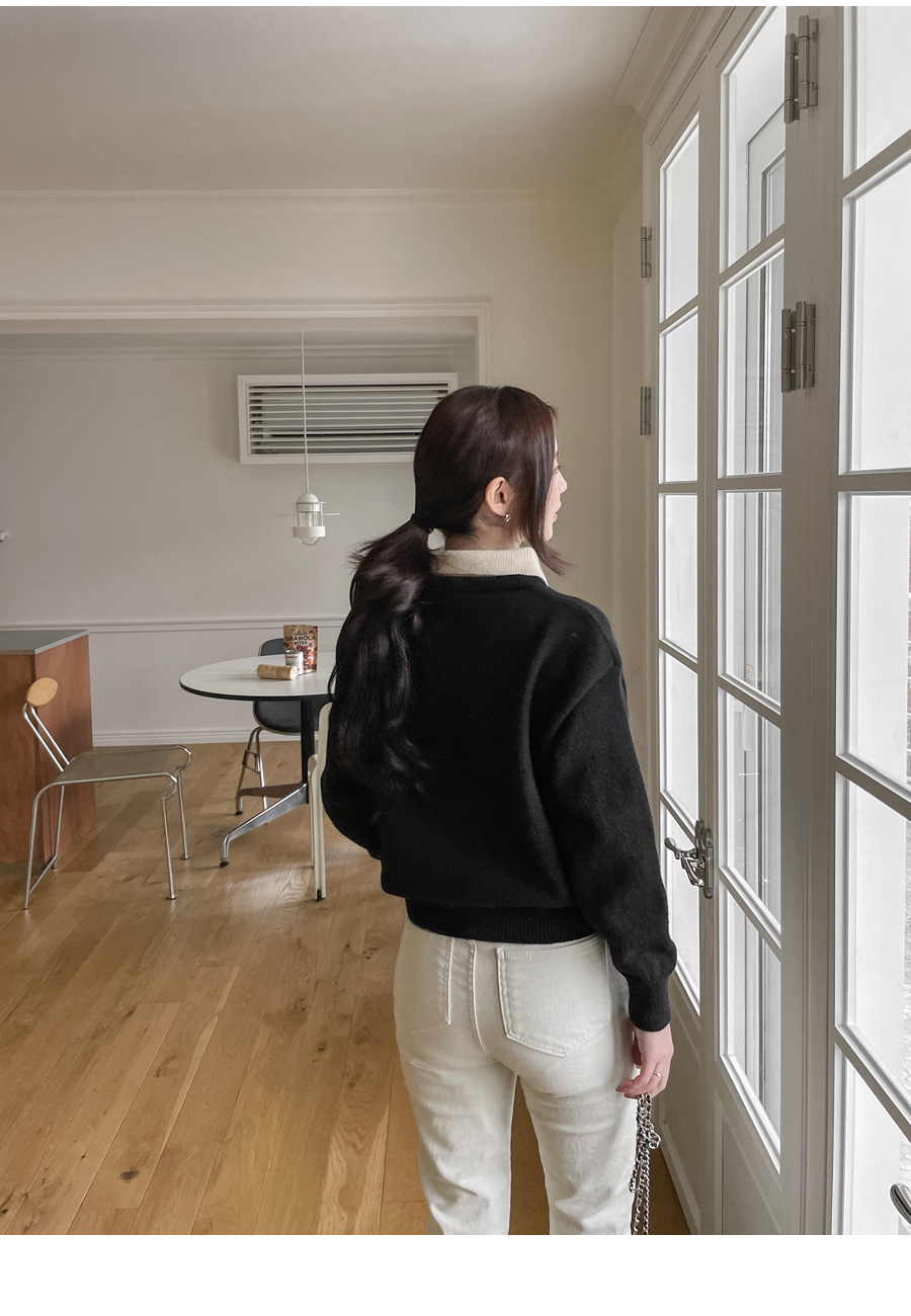 레이어드 한 듯 배색라인으로 더해진 카라넥으로
