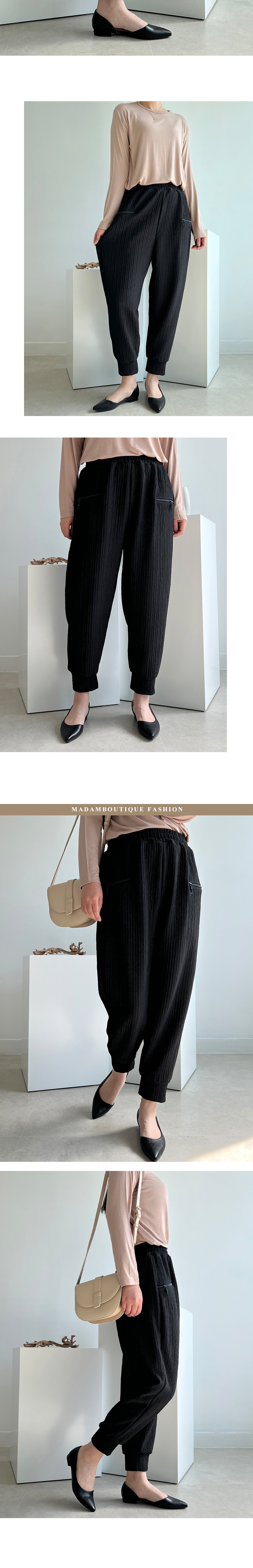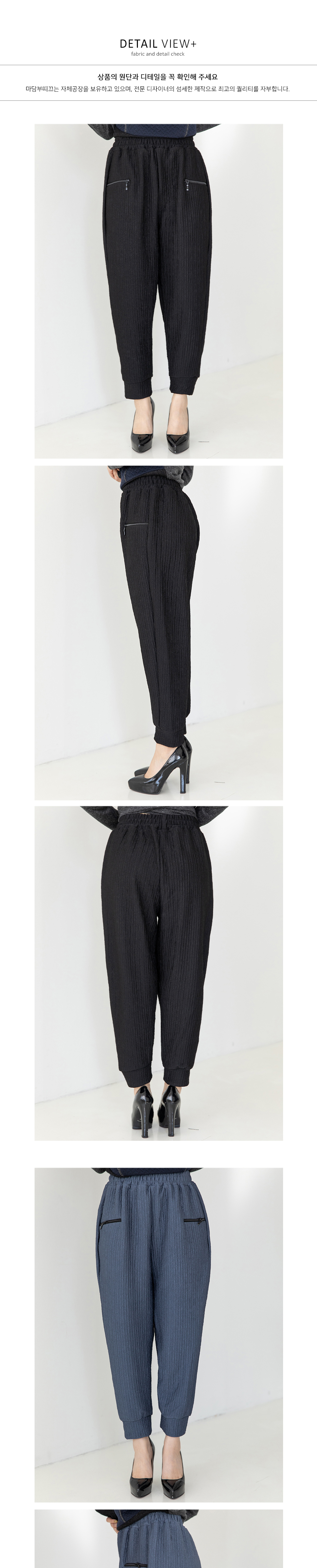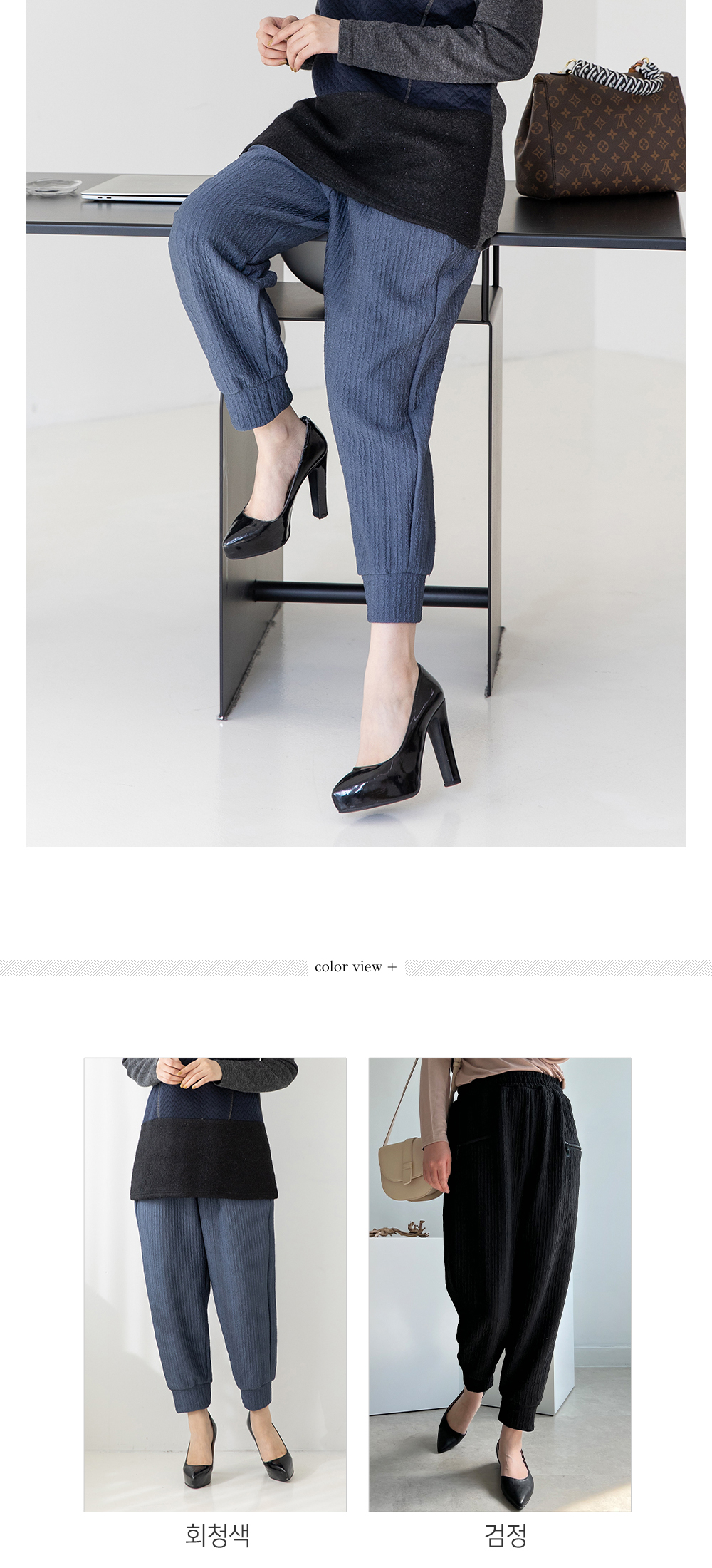 밑단에 더해진 시보리 스타일의 조거 디자인