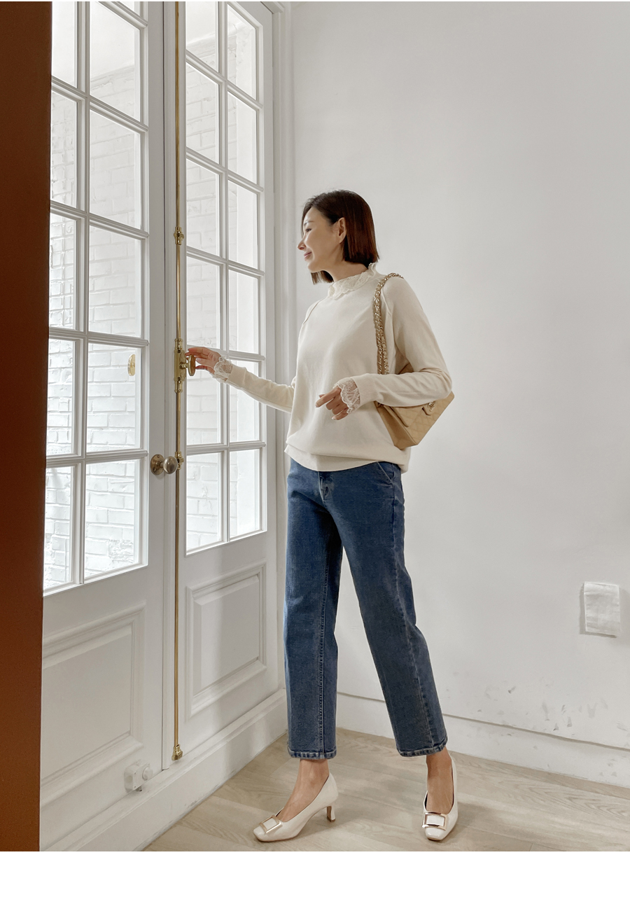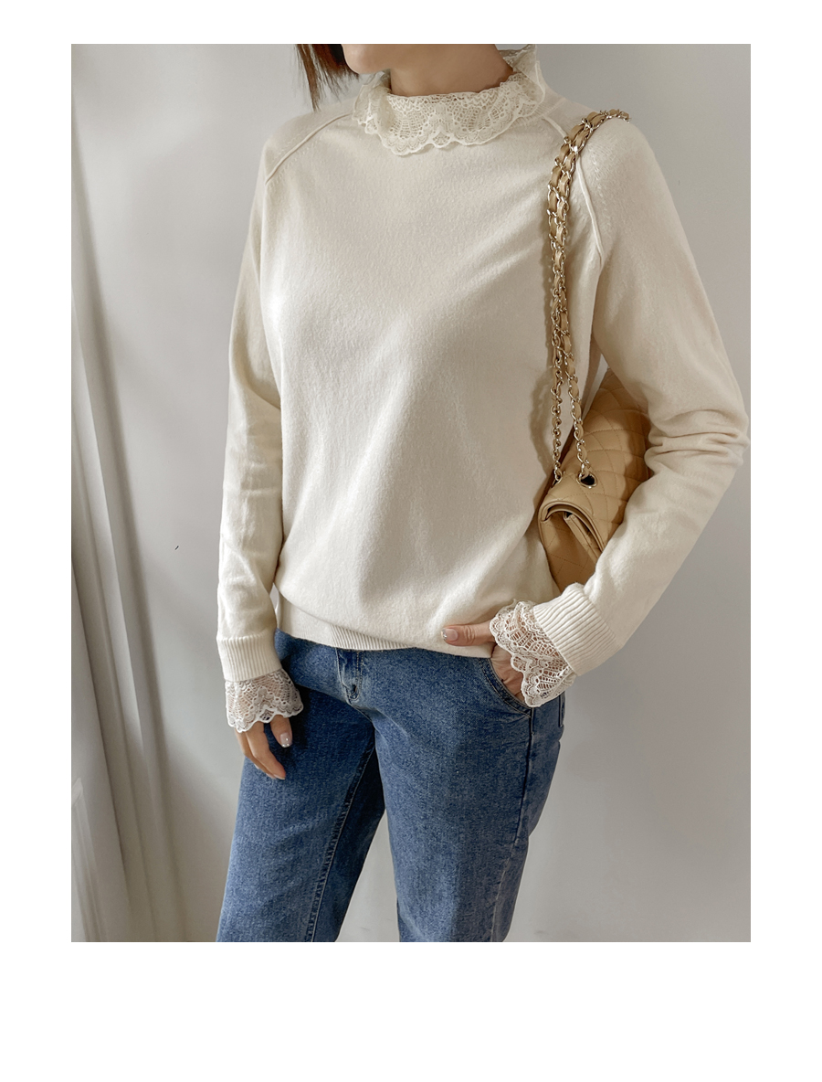 넥라인과 소매부분으로만 레이스가 덧대어져 있어