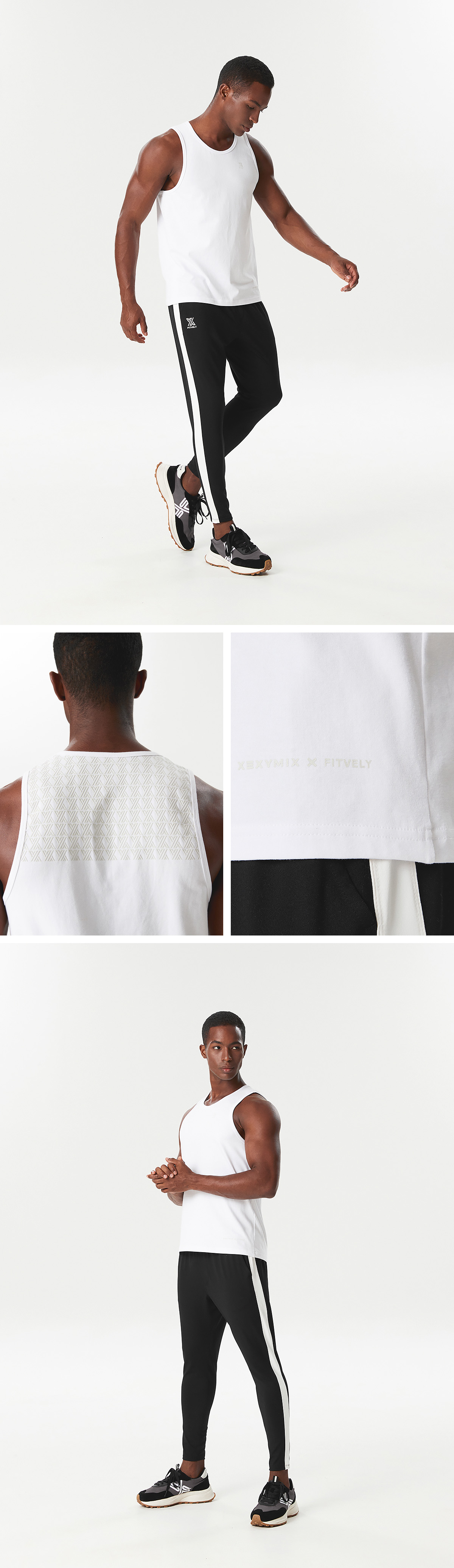 좌측 가슴과 밑단에 젝시 맨즈와 운동 유튜버 핏블리의 콜라보 로고를 더해
