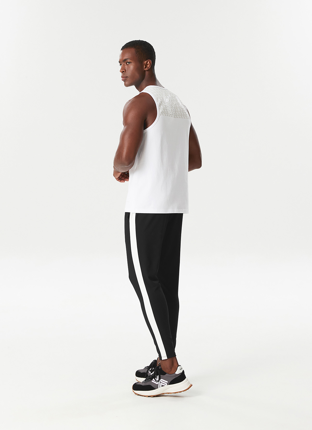 타이트하게 몸을 잡아주는 핏으로 상체 근육을 돋보이게 해