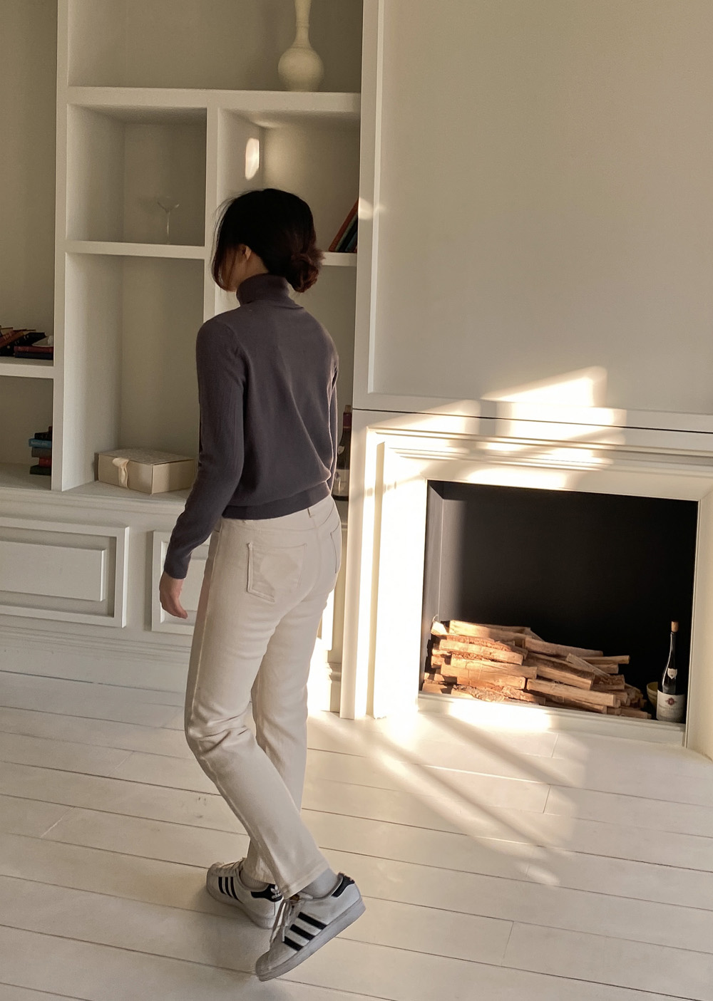 목을 감싸주는 폴라디테일에 베이직핏으로 제작,