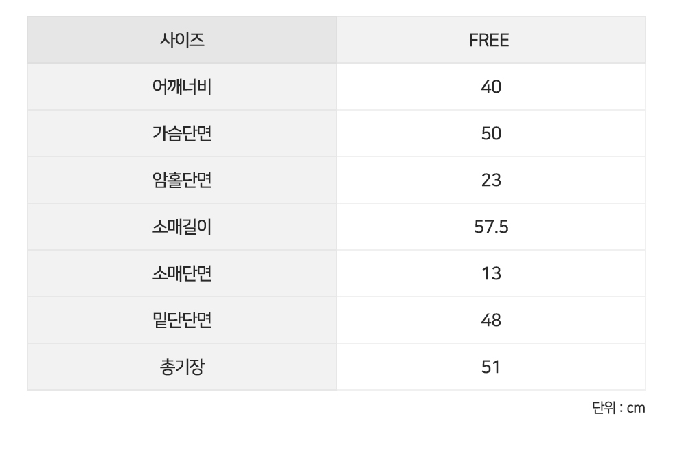 FREE 어깨단면40 가슴단면50 암홀단면23