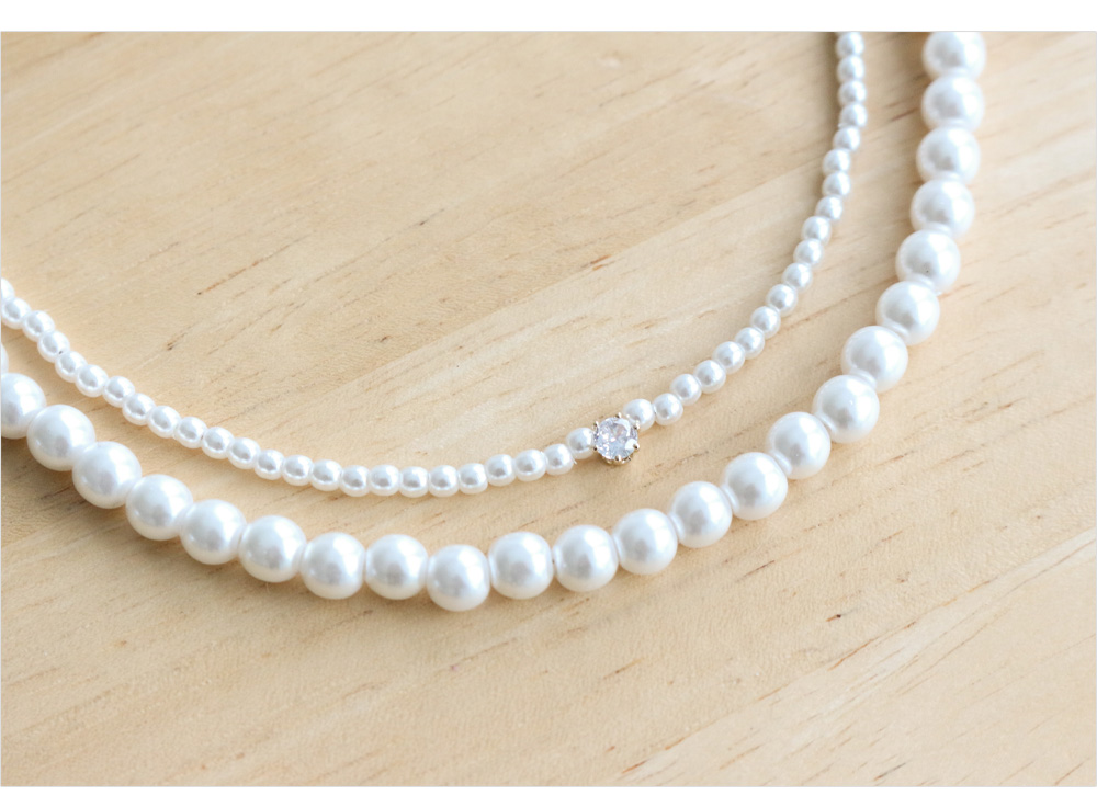 2줄 큐빅 진주목걸이 #87142