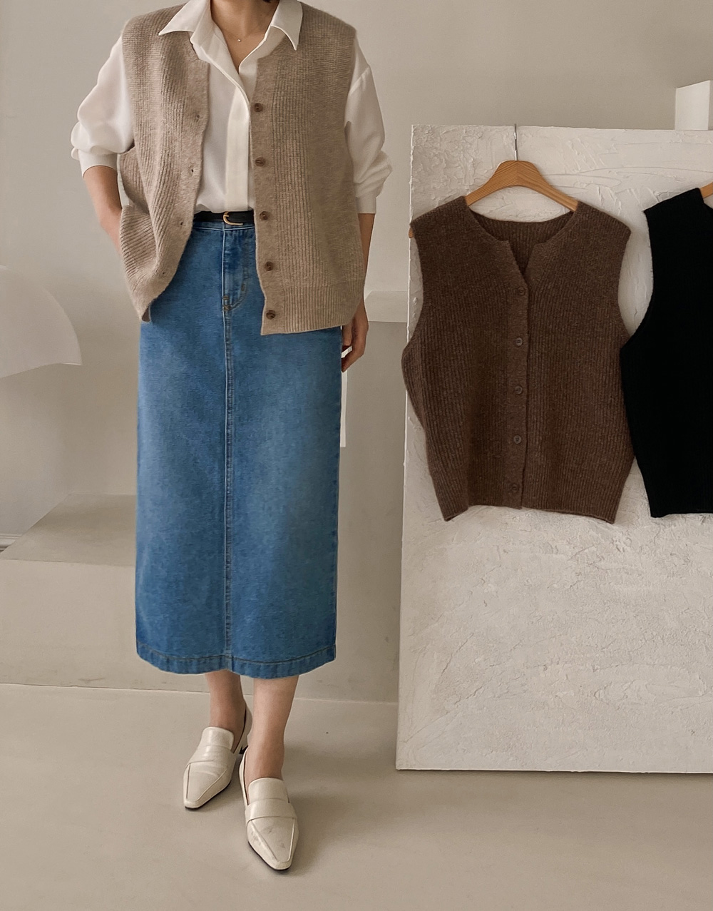 청바지, 슬랙스, 원피스랑도 입었어요!