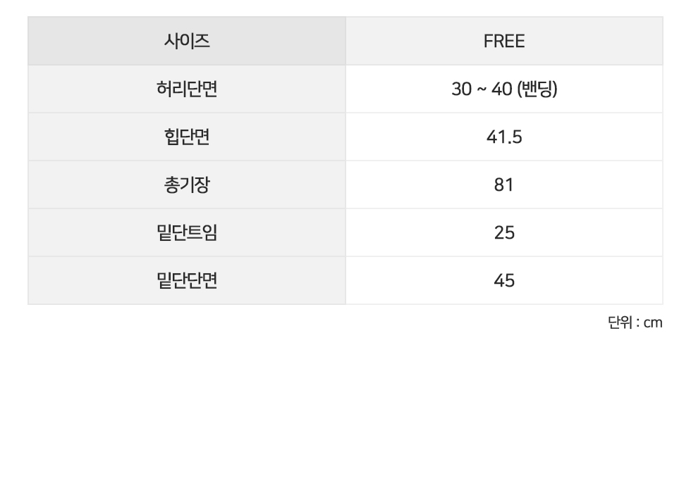 FREE 허리단면30-40(밴딩) 힙단면41.5 밑단단면45