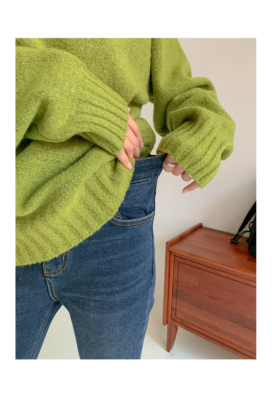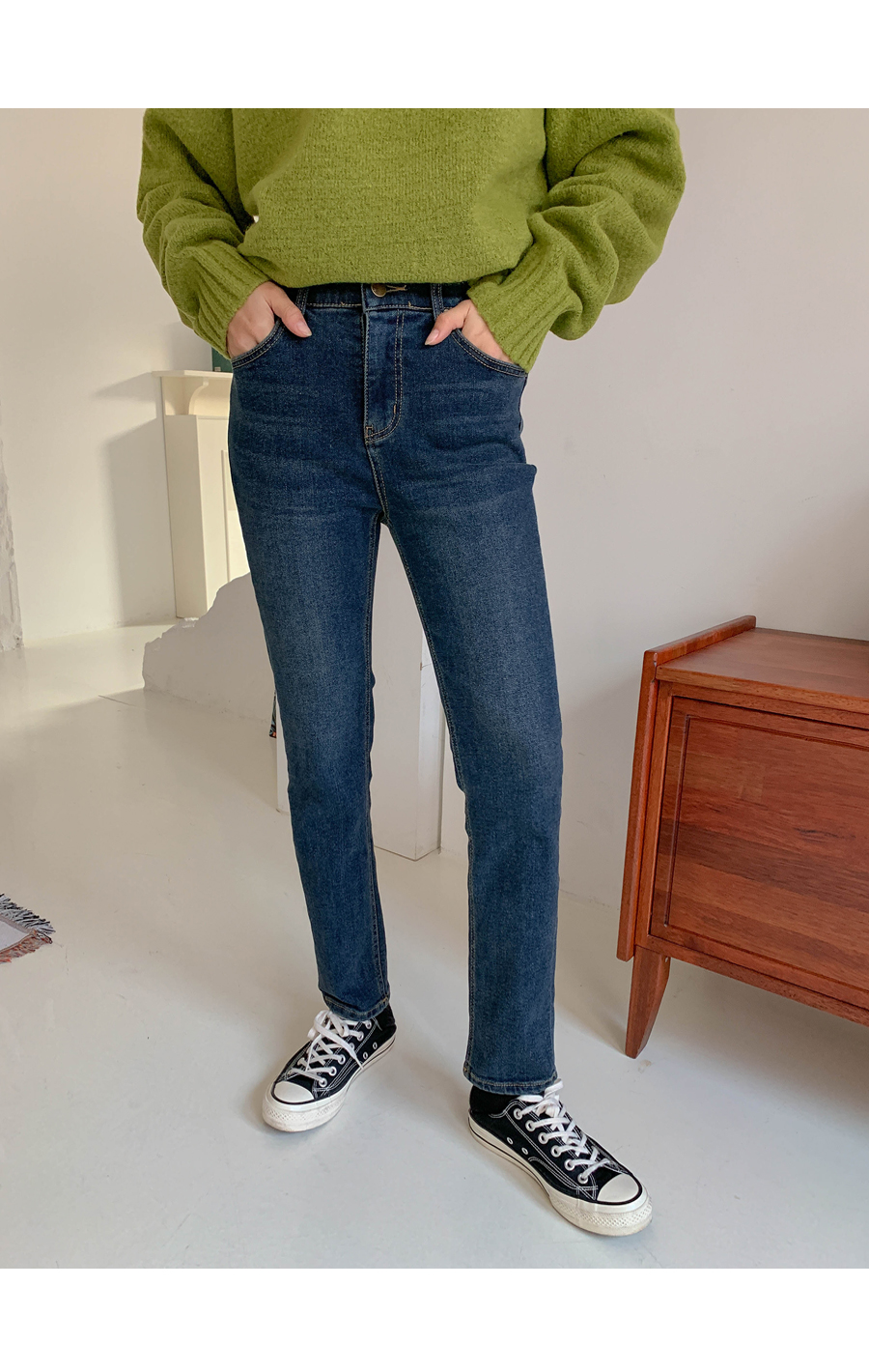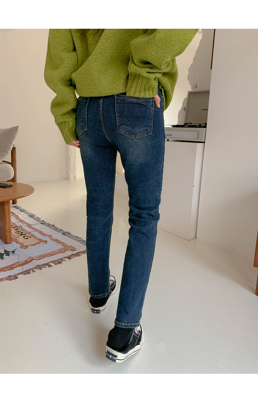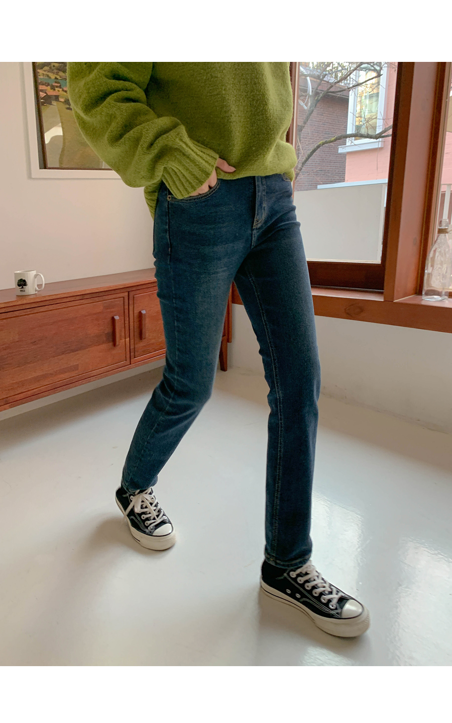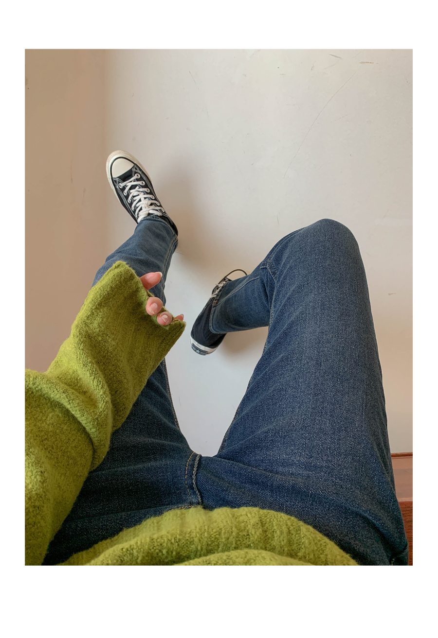 Name banding brushed denim pants