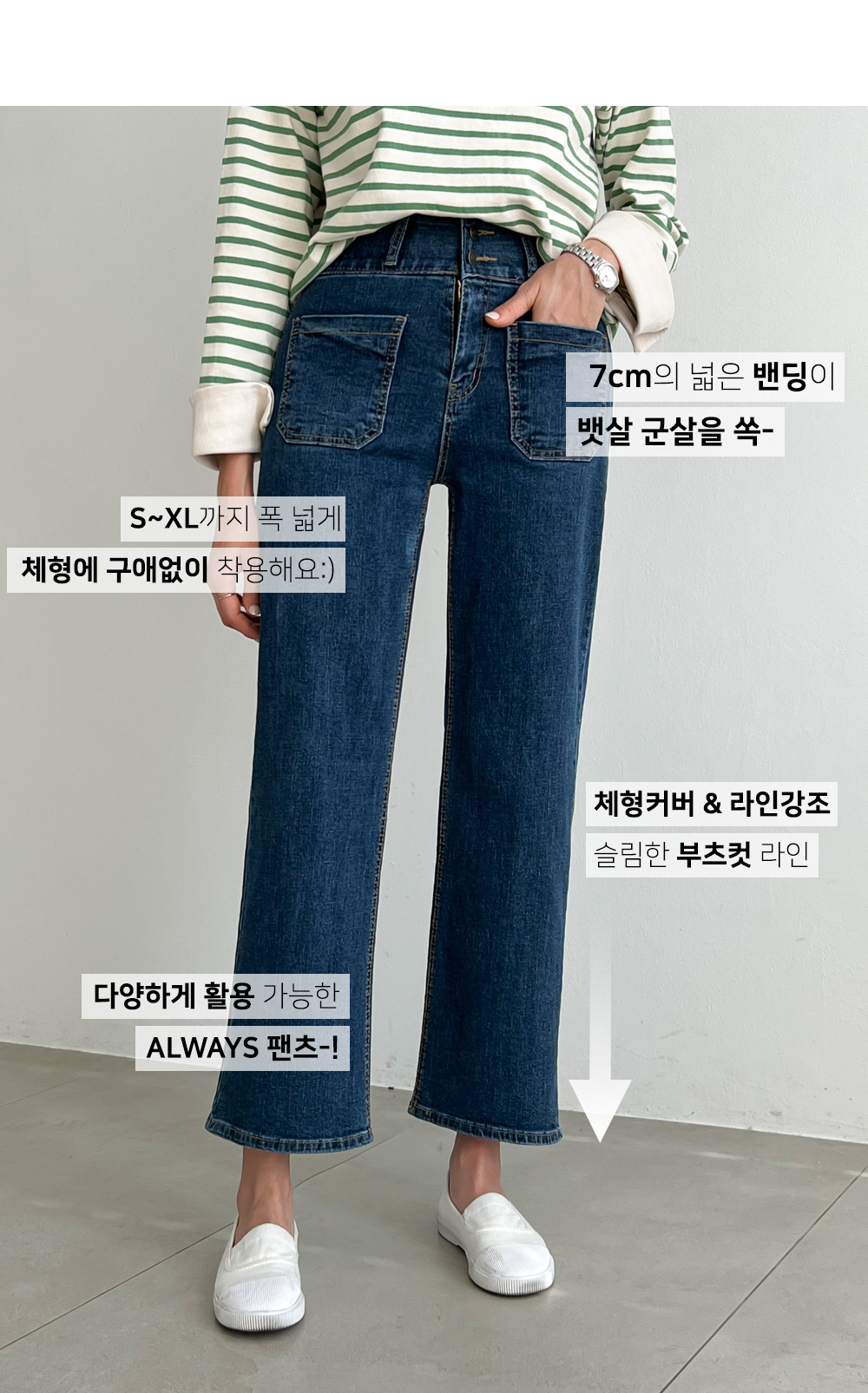 7cm의 두꺼운 허리밴딩이 더욱 안정적으로 허리라인을