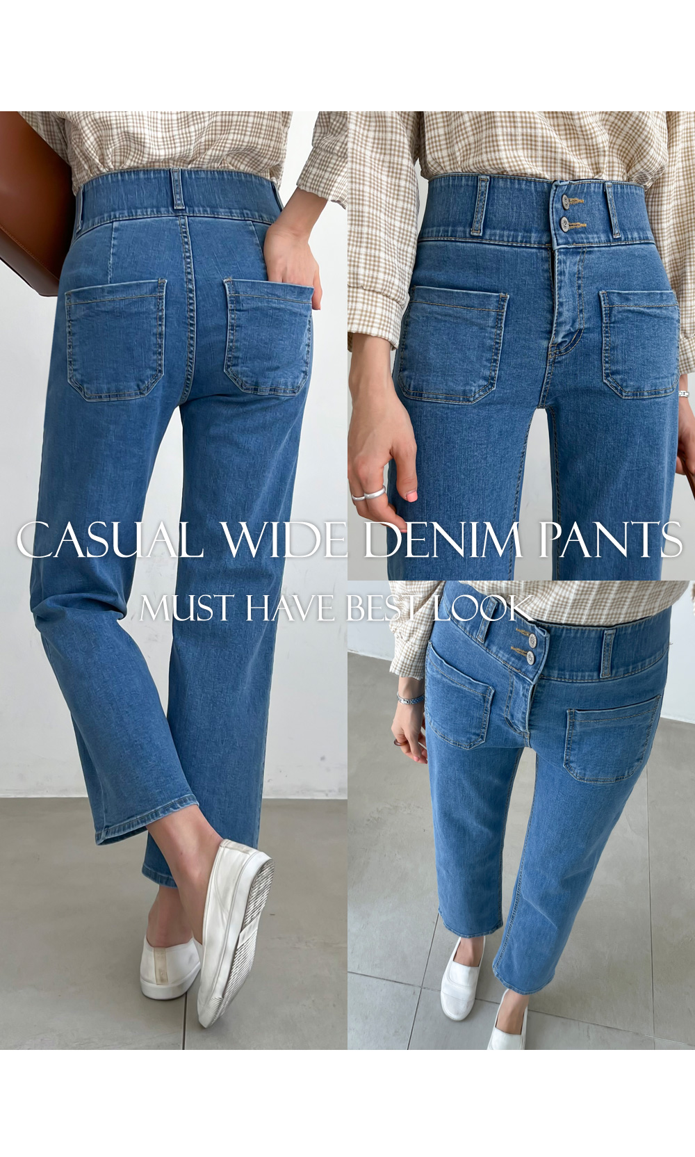와이드 밴딩 투버튼 데님 팬츠 #79850,#79482