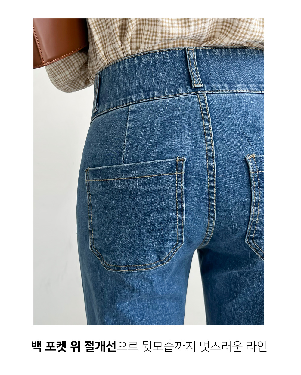 백라인으로 절개가 들어가 핏이 단정해보이는 팬츠에요.