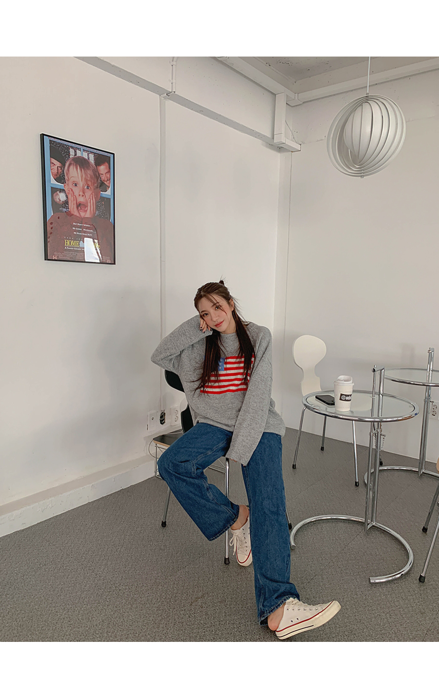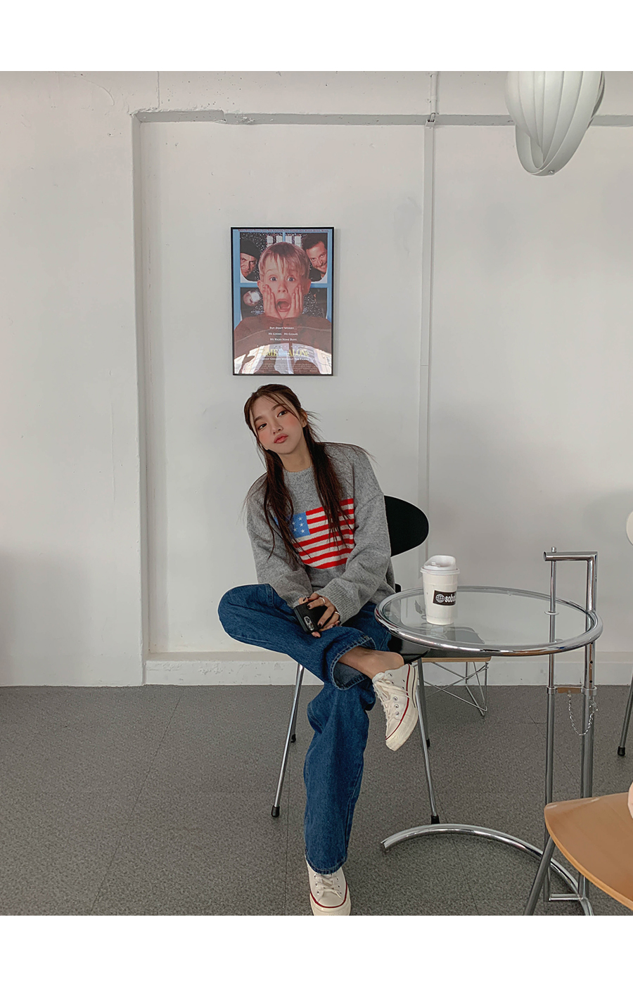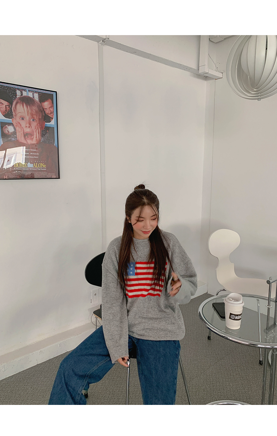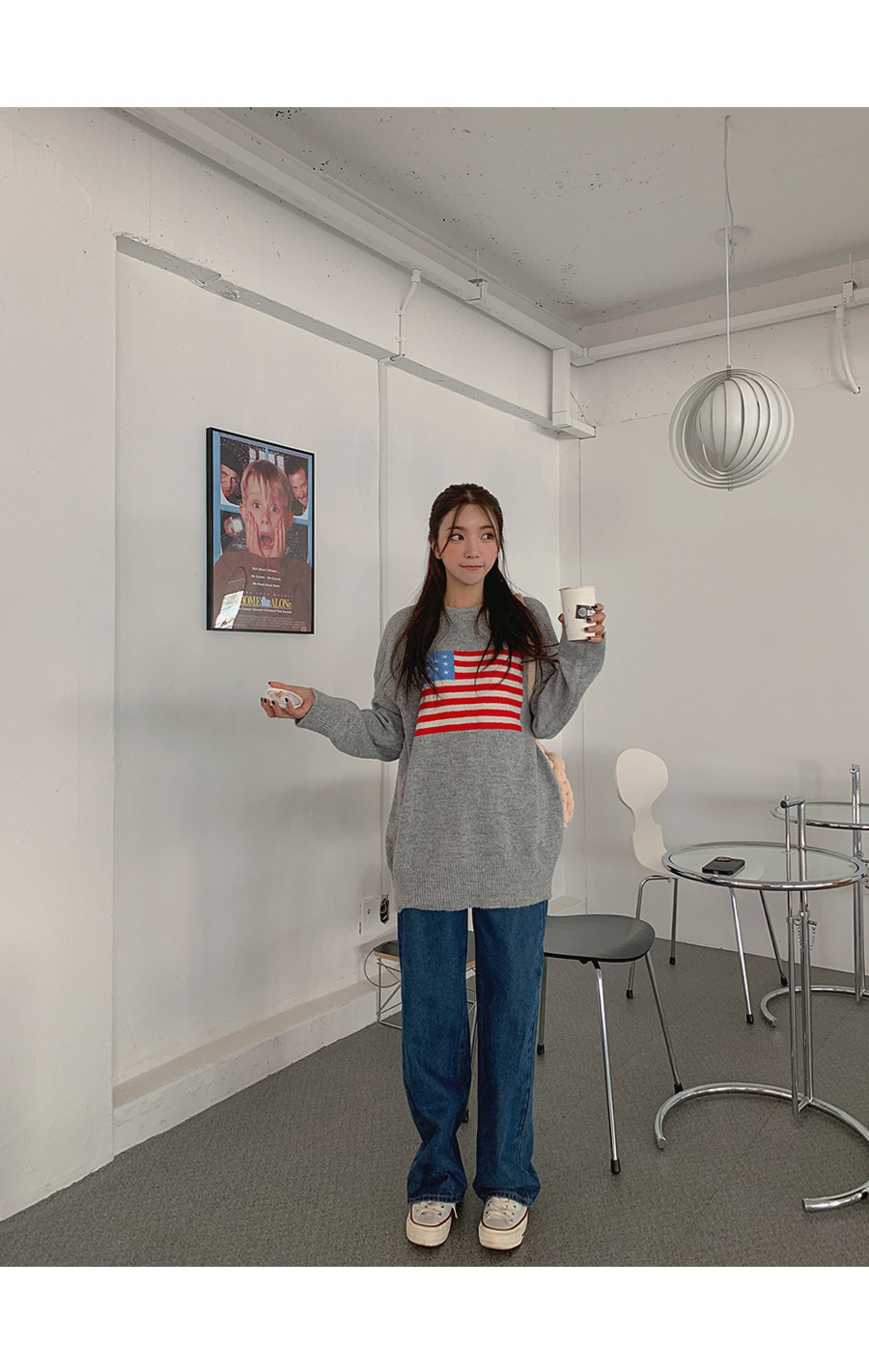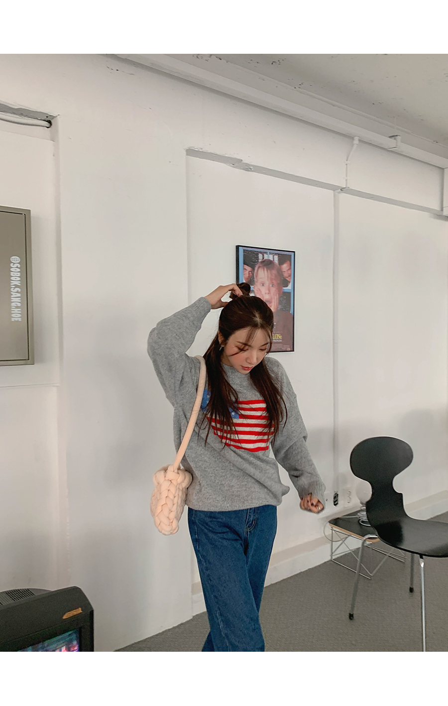 Round-eyed cat collar argyle knit