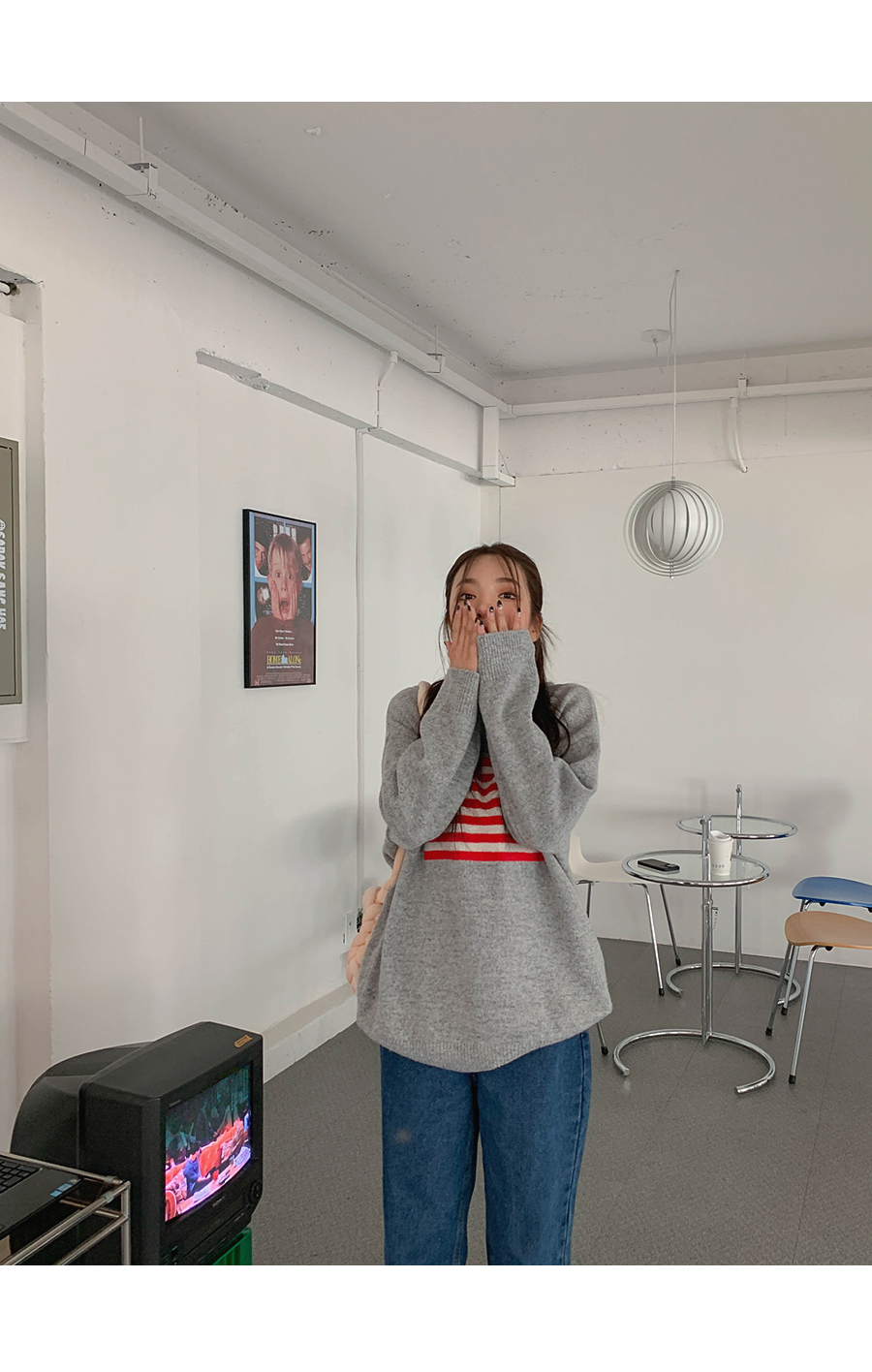 Rib cashmere semi-polar knit