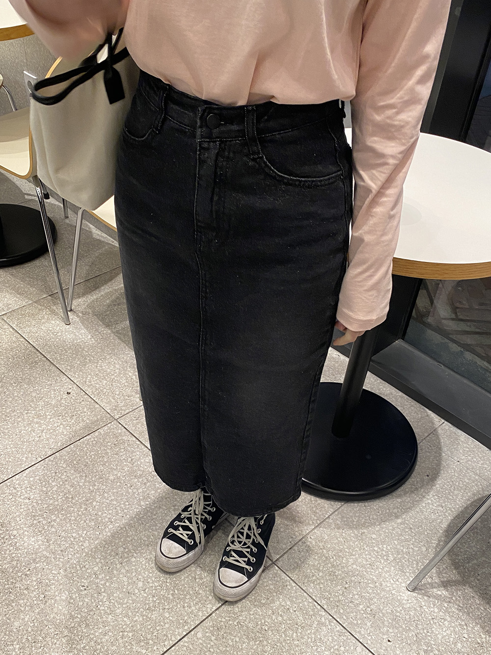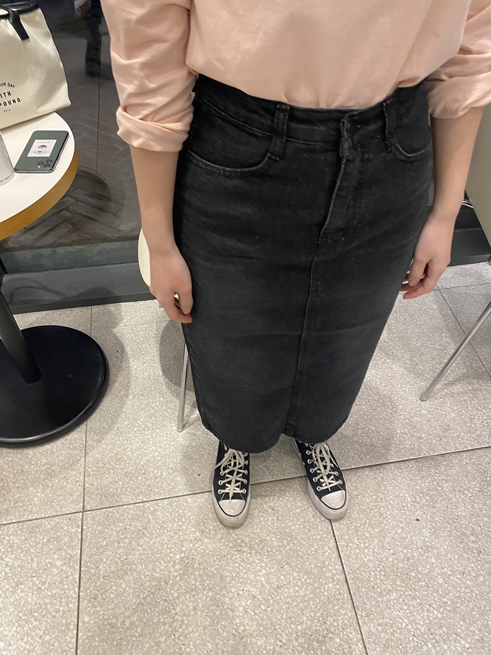 기장은 힙을 덮어주는 하프 길이감으로