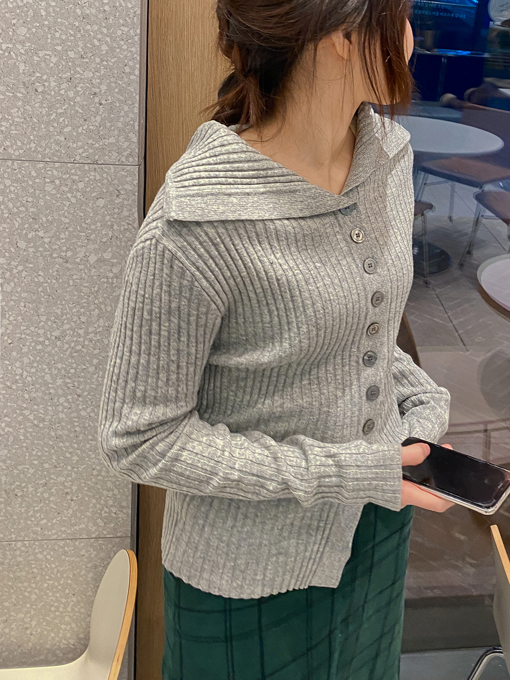 Big collar button corrugated cardigan tee-4color, warm wool cashmere knit-soft cardigan tee - Style Tea Bar