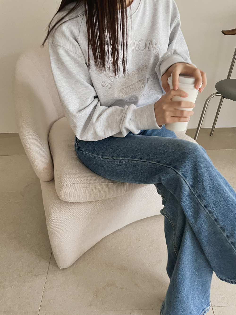 Cotton Lettering Embroidery Sweatshirt-3color, Daily color sense- No worries about washing with lettering embroidery!