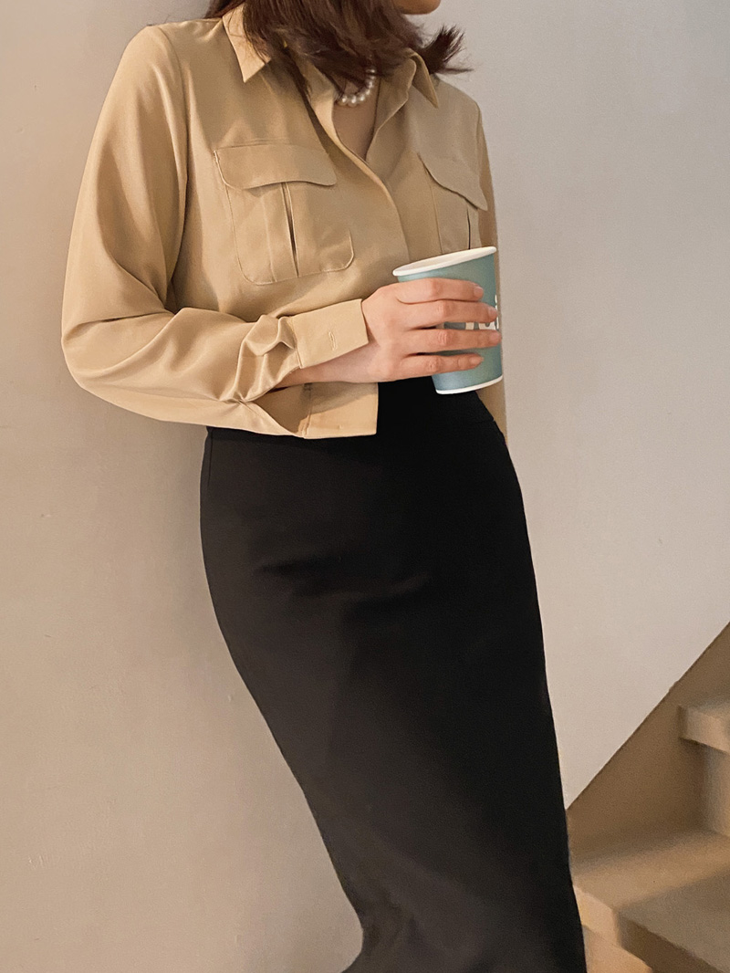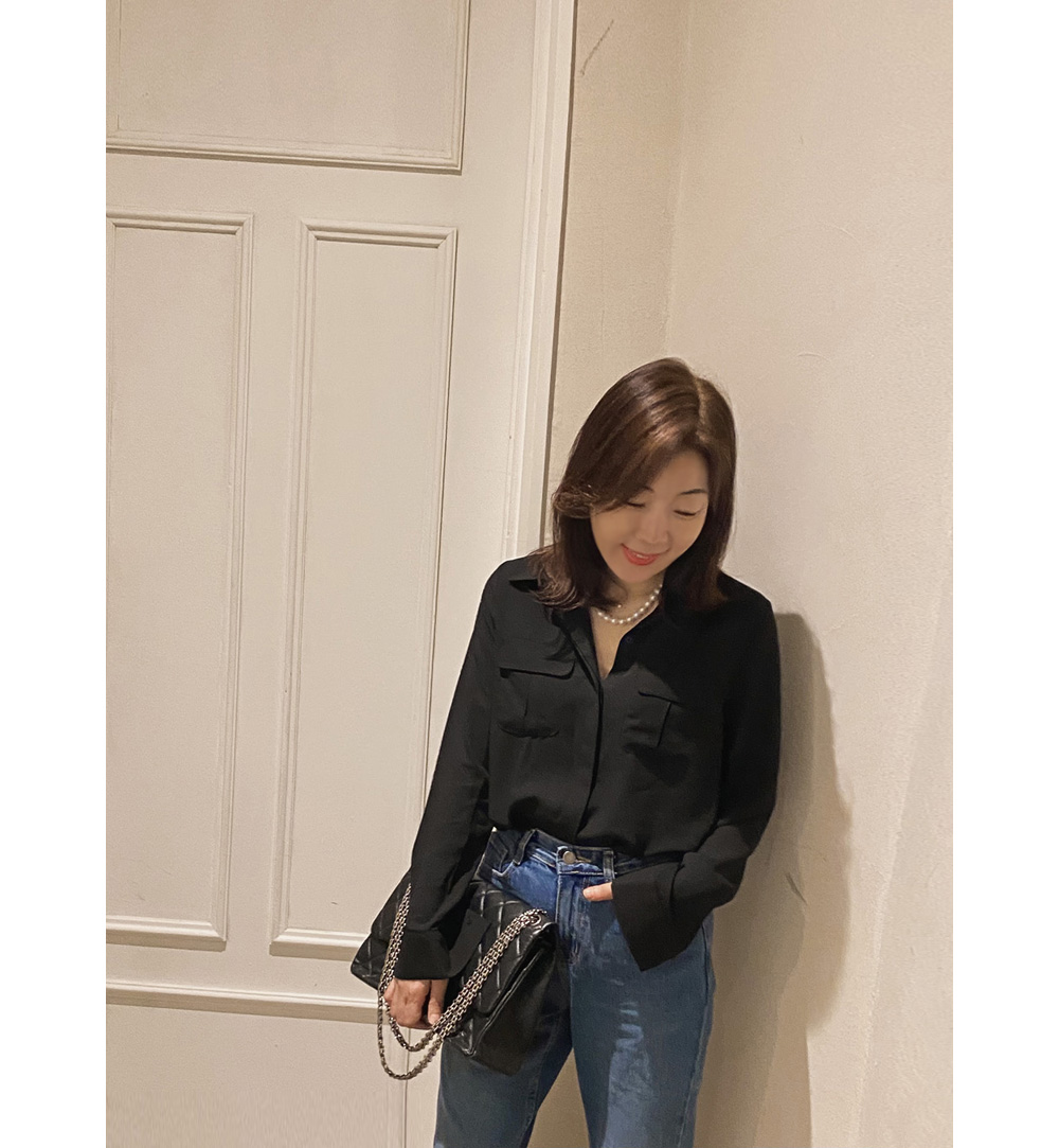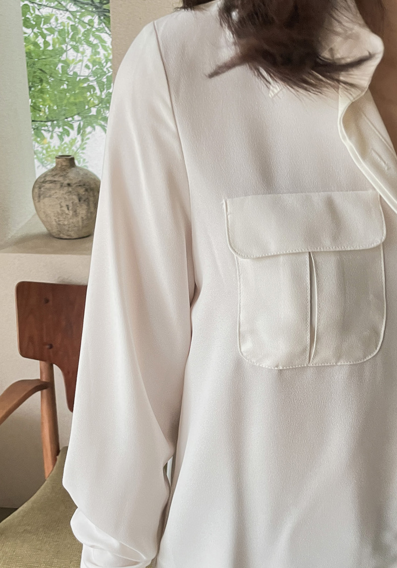 Muse Basic Pocket Blouse-3color, Luxurious Feminine Mood-Comfortable Wear, Moderate Thickness - Style Tiva