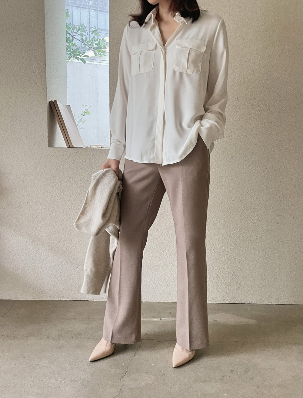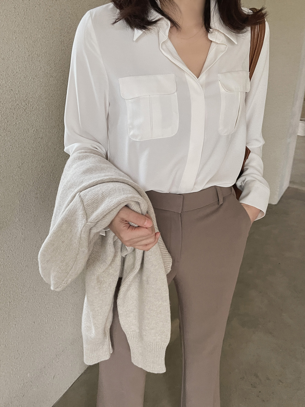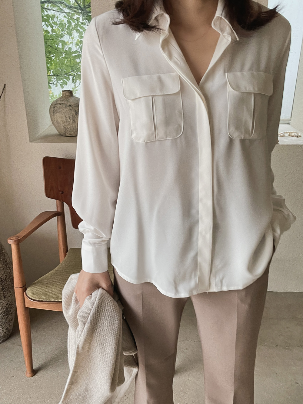 Muse Basic Pocket Blouse-3color, Luxurious Feminine Mood-Comfortable Wear, Moderate Thickness - Style Tiva