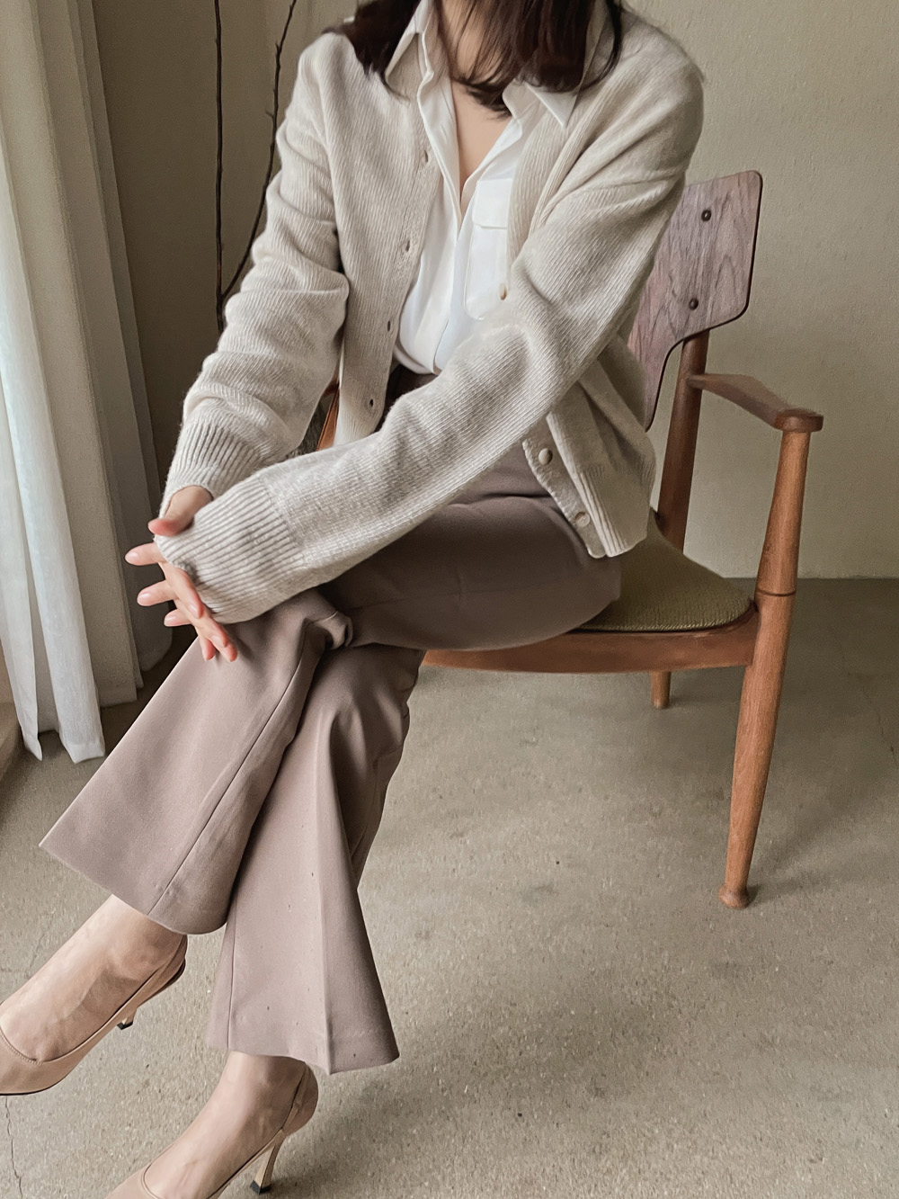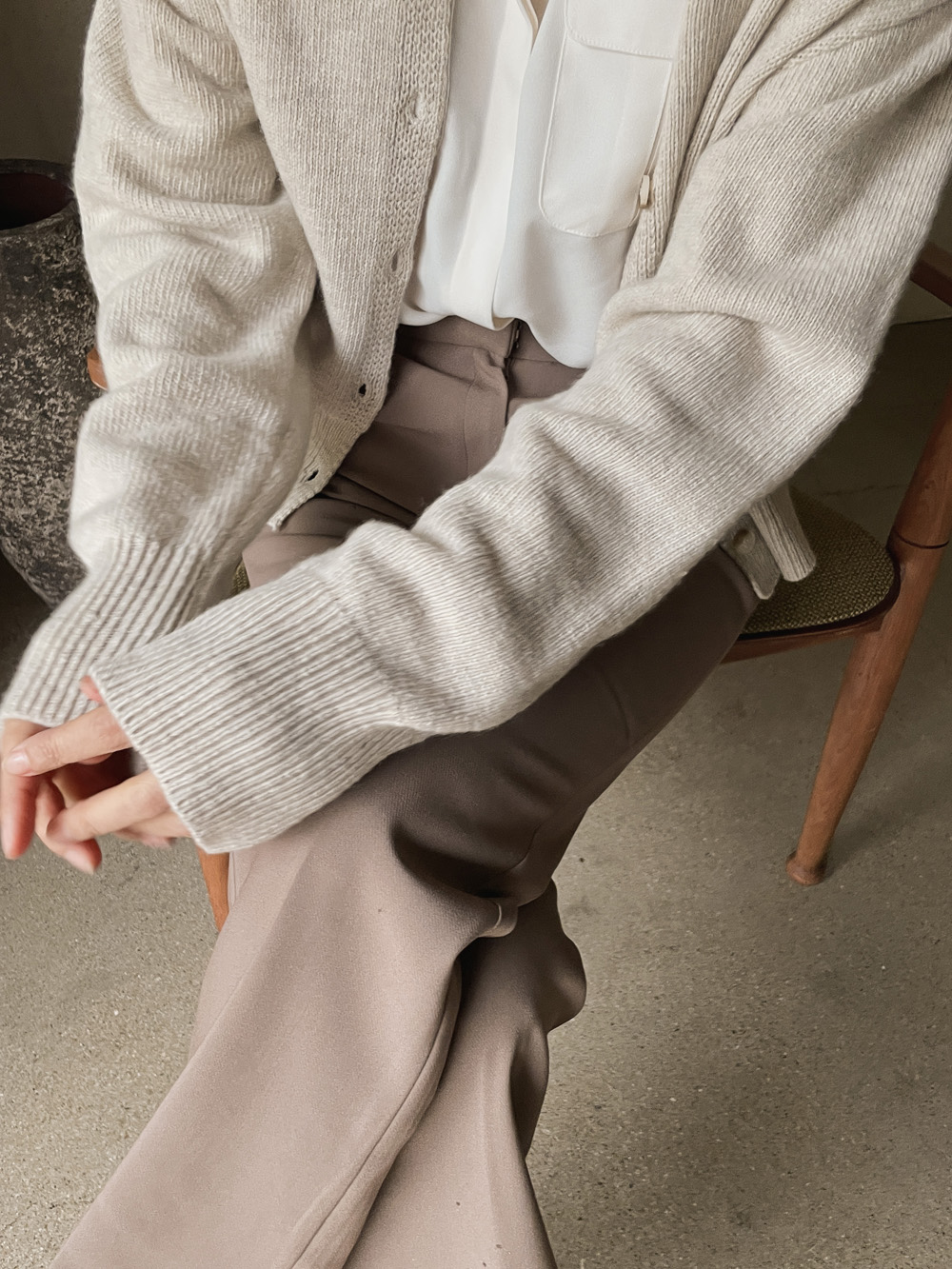 적당히 루즈하게 떨어지는 소매라인이
