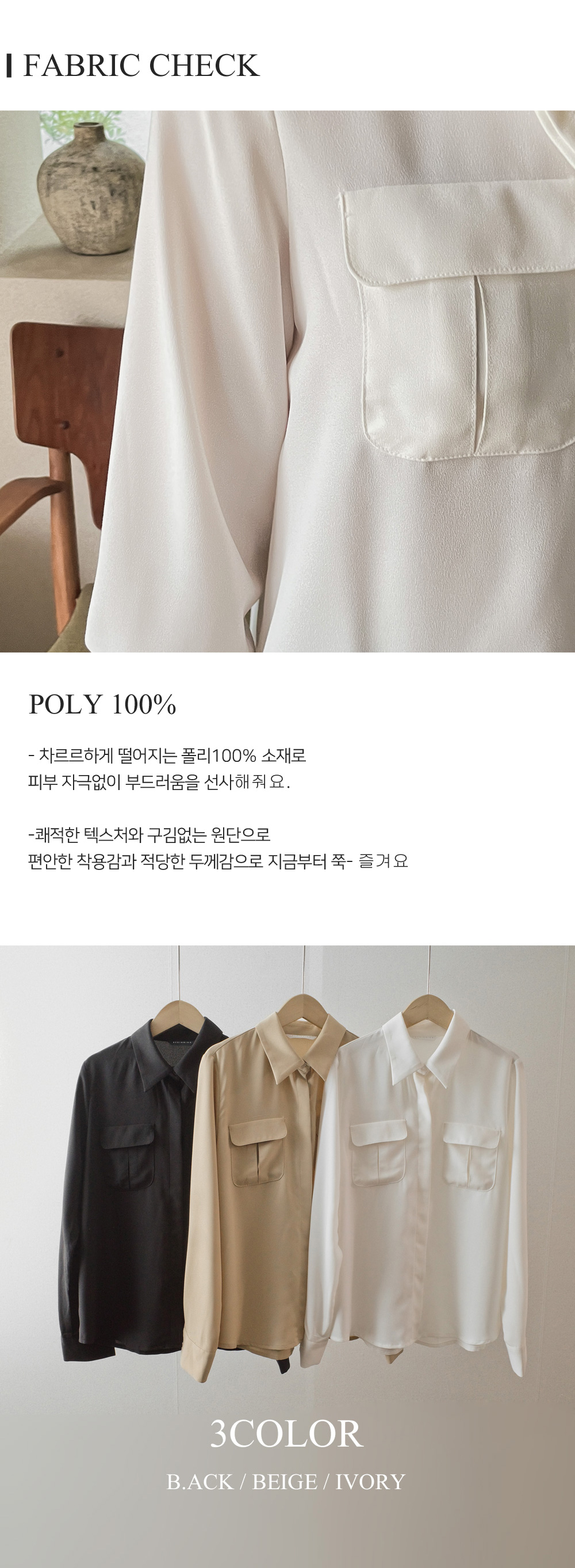 fabric : 부드럽고,찰랑찰랑 드라이한 폴리