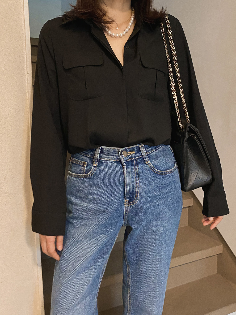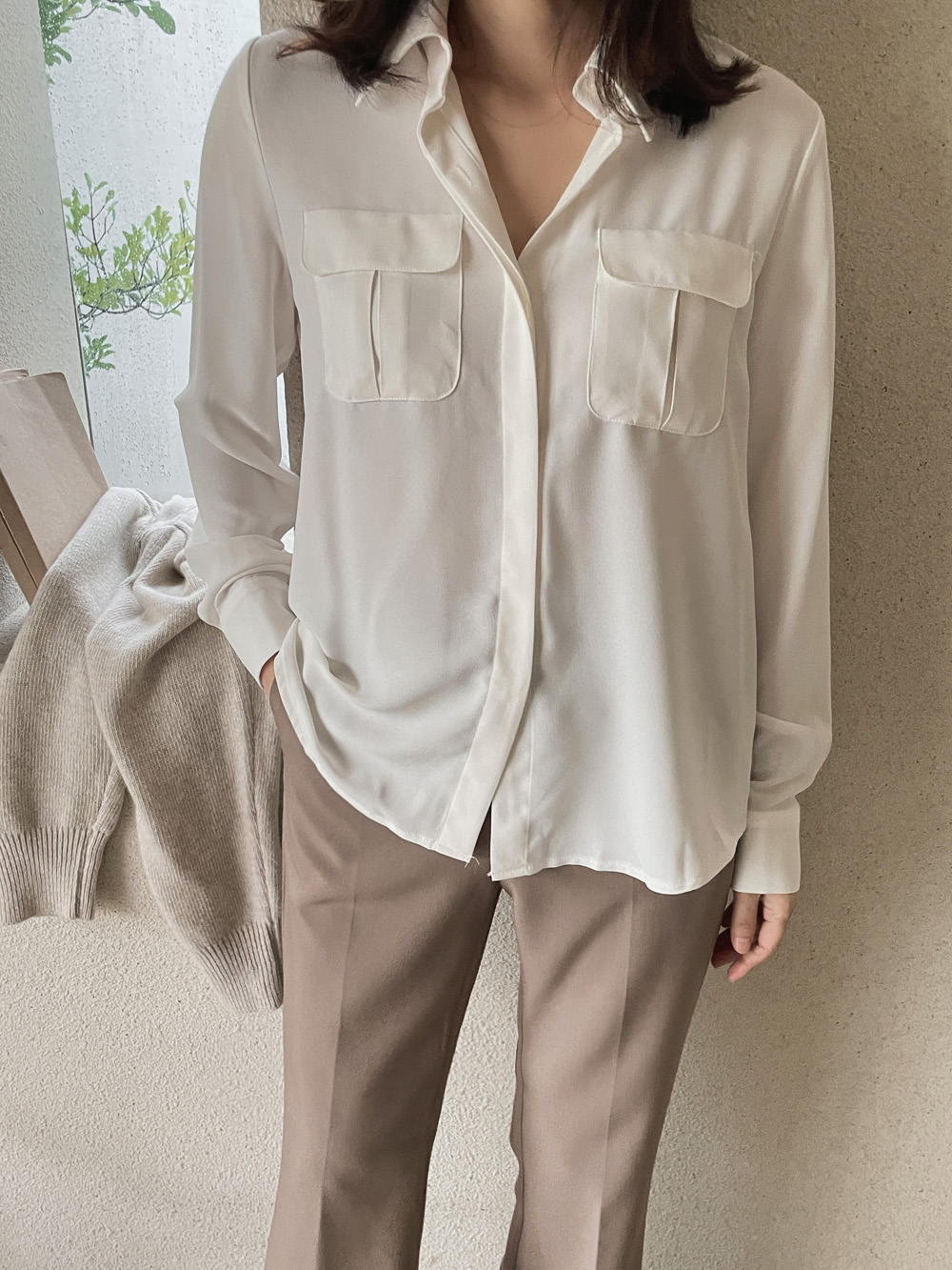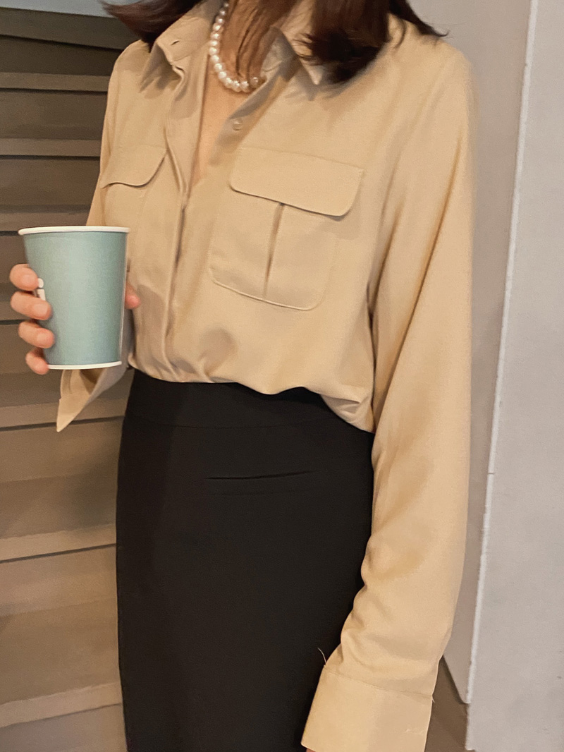 #뮤즈 베이직 포켓블라우스