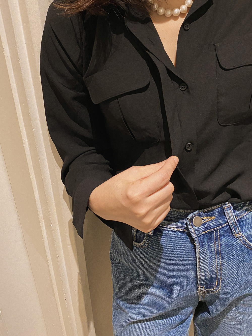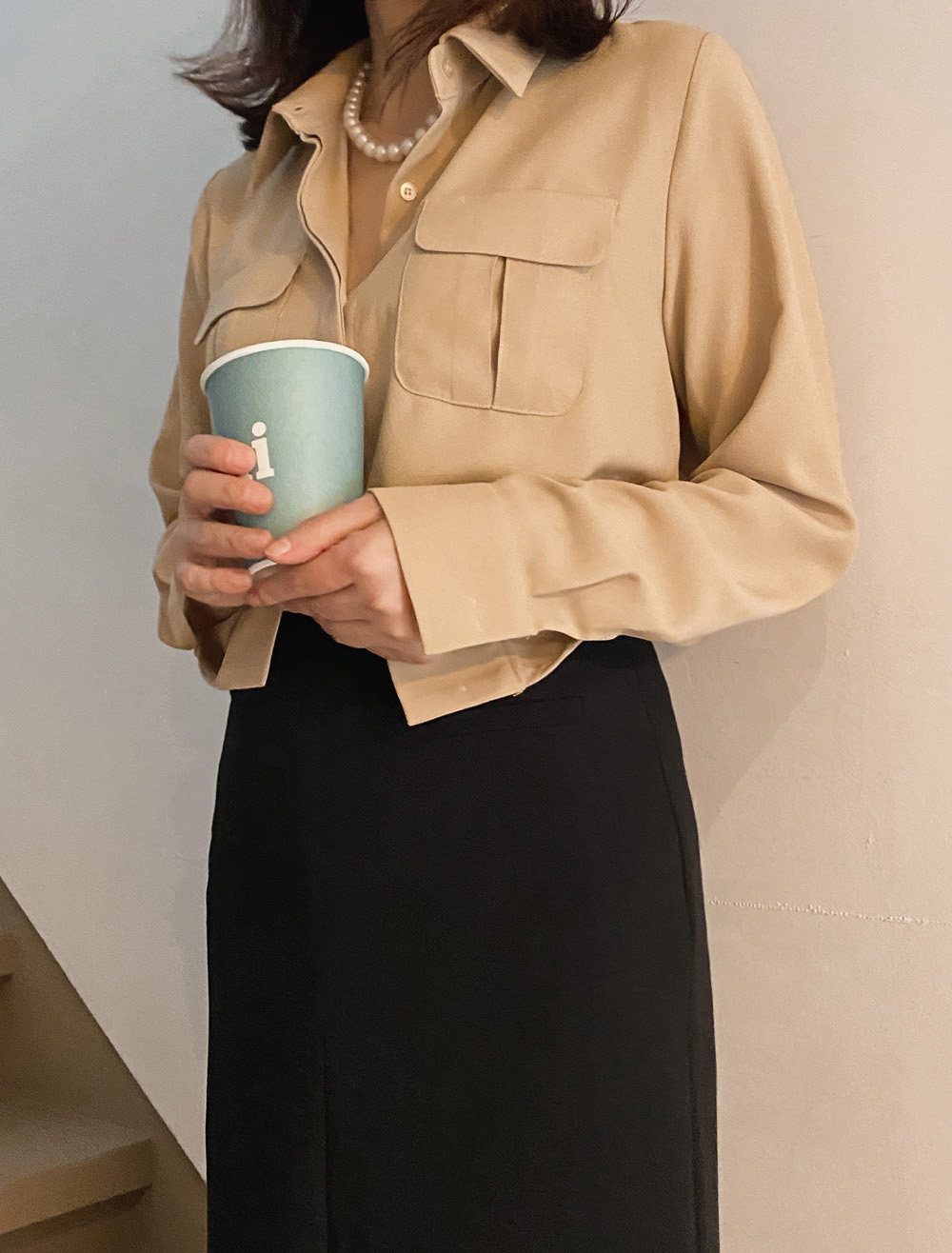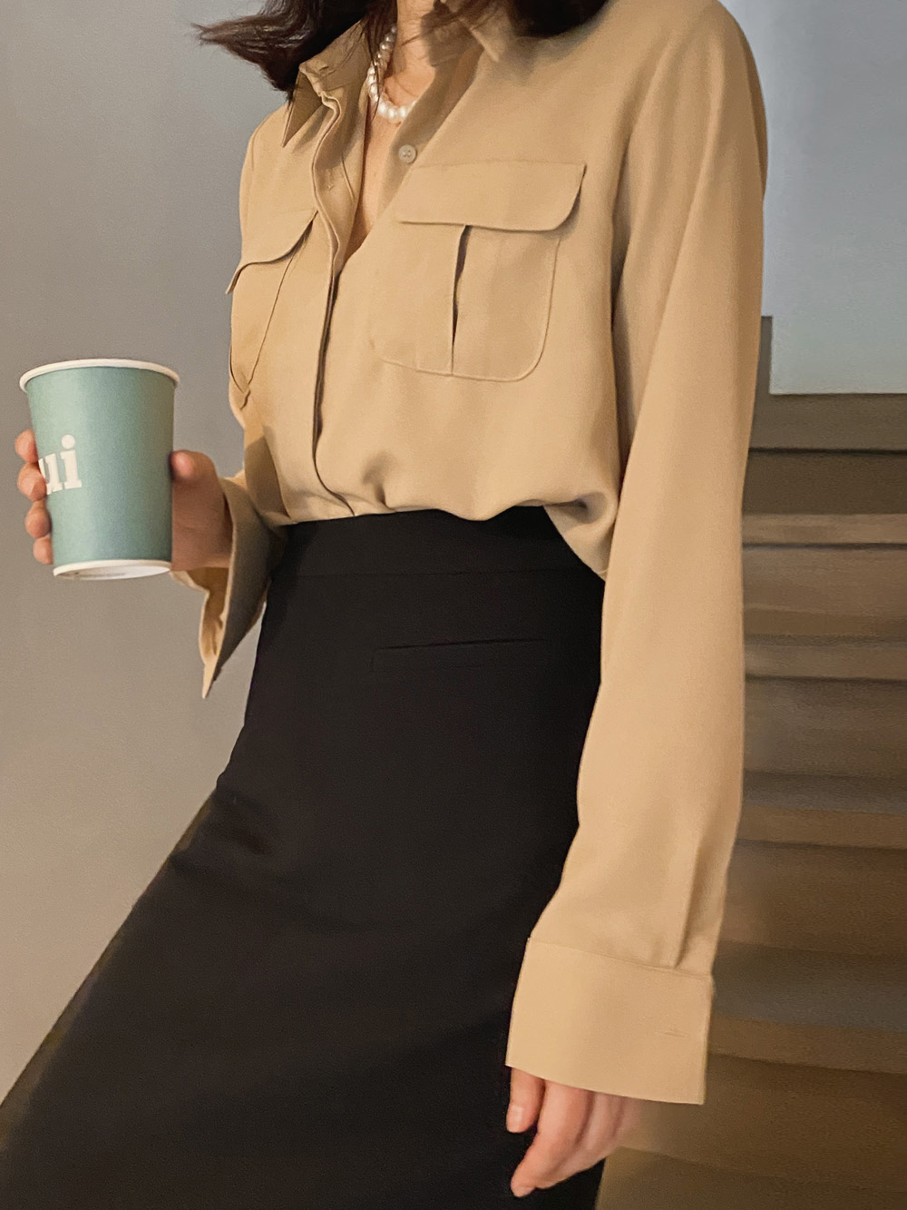 #뮤즈 베이직 포켓블라우스