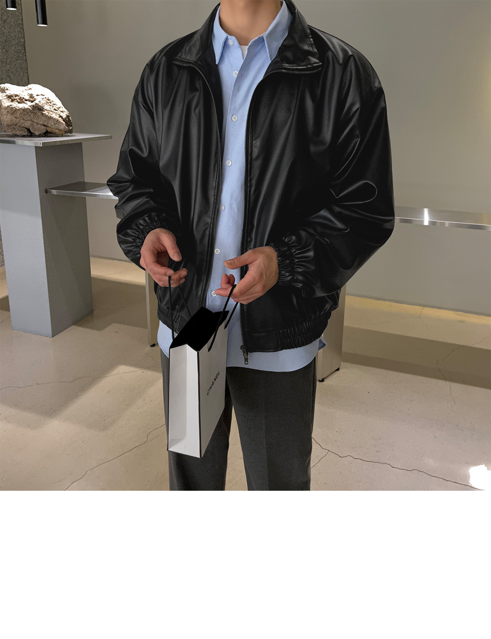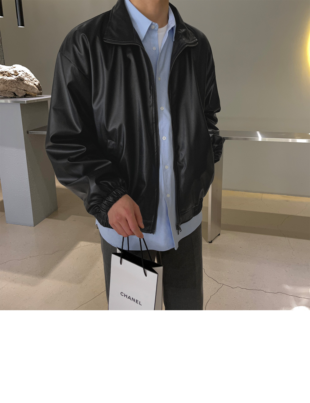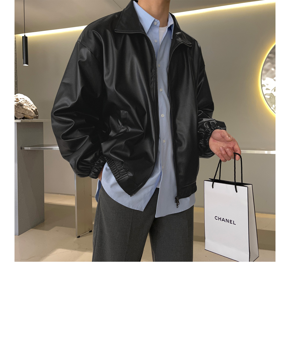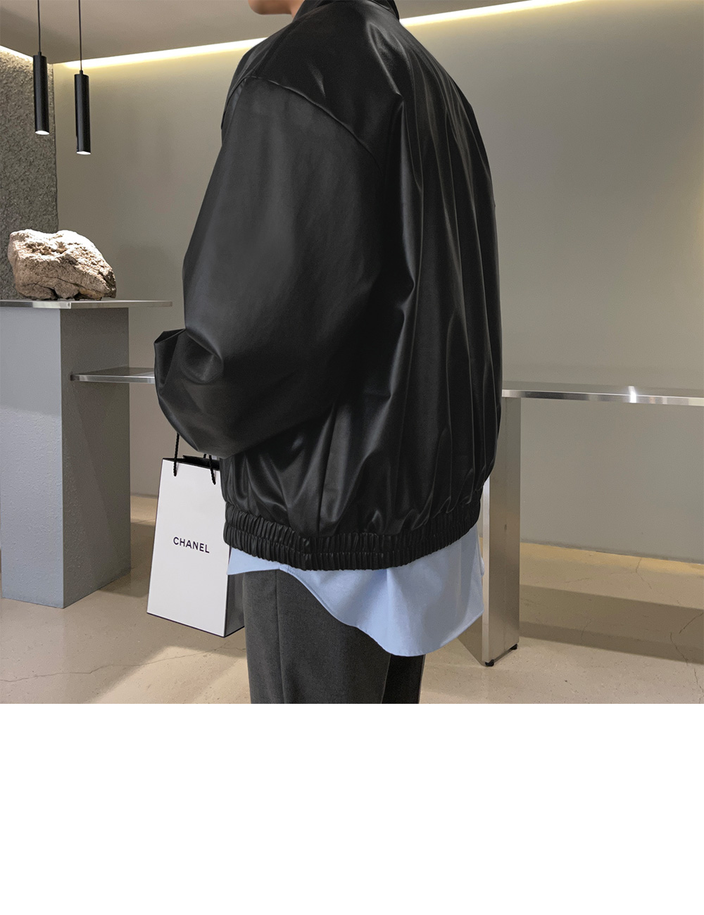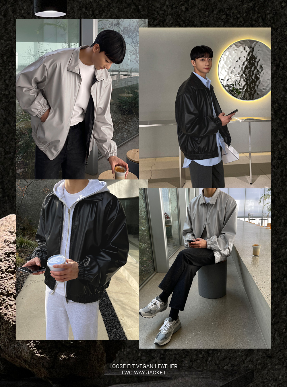 loose fit vegan leather two-way jacket L~XL(95 to 105)