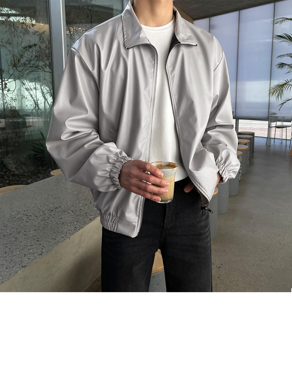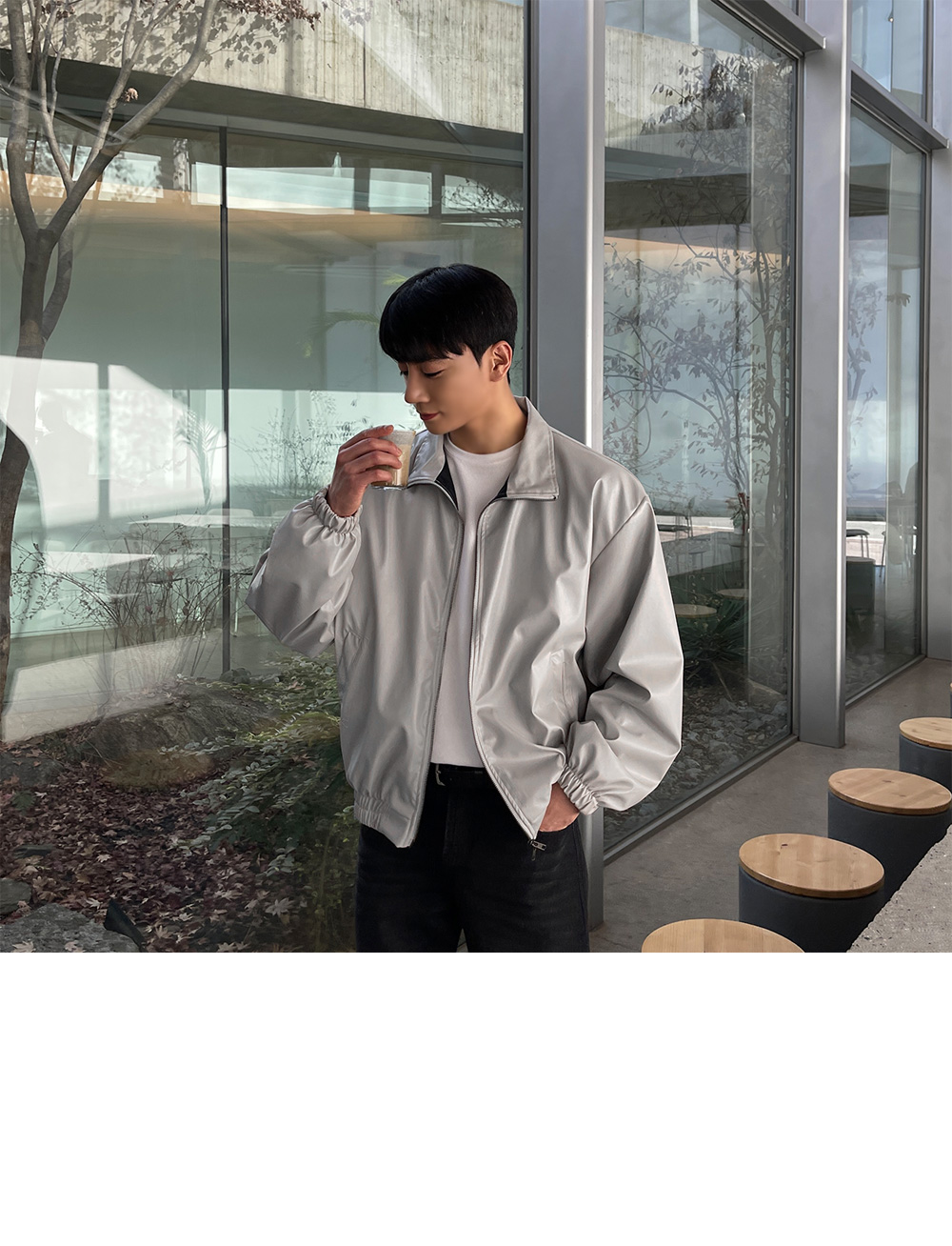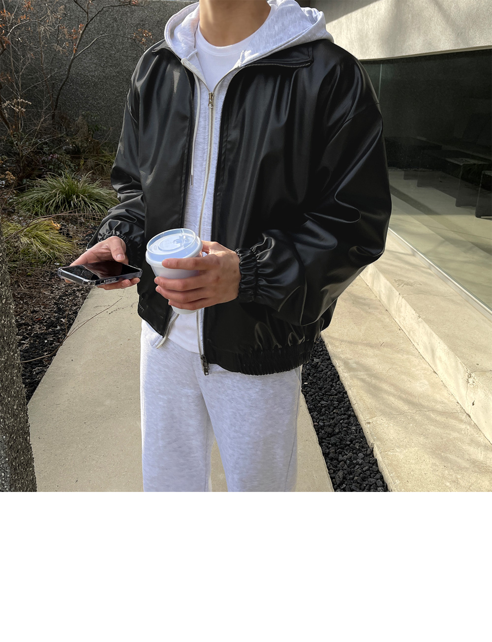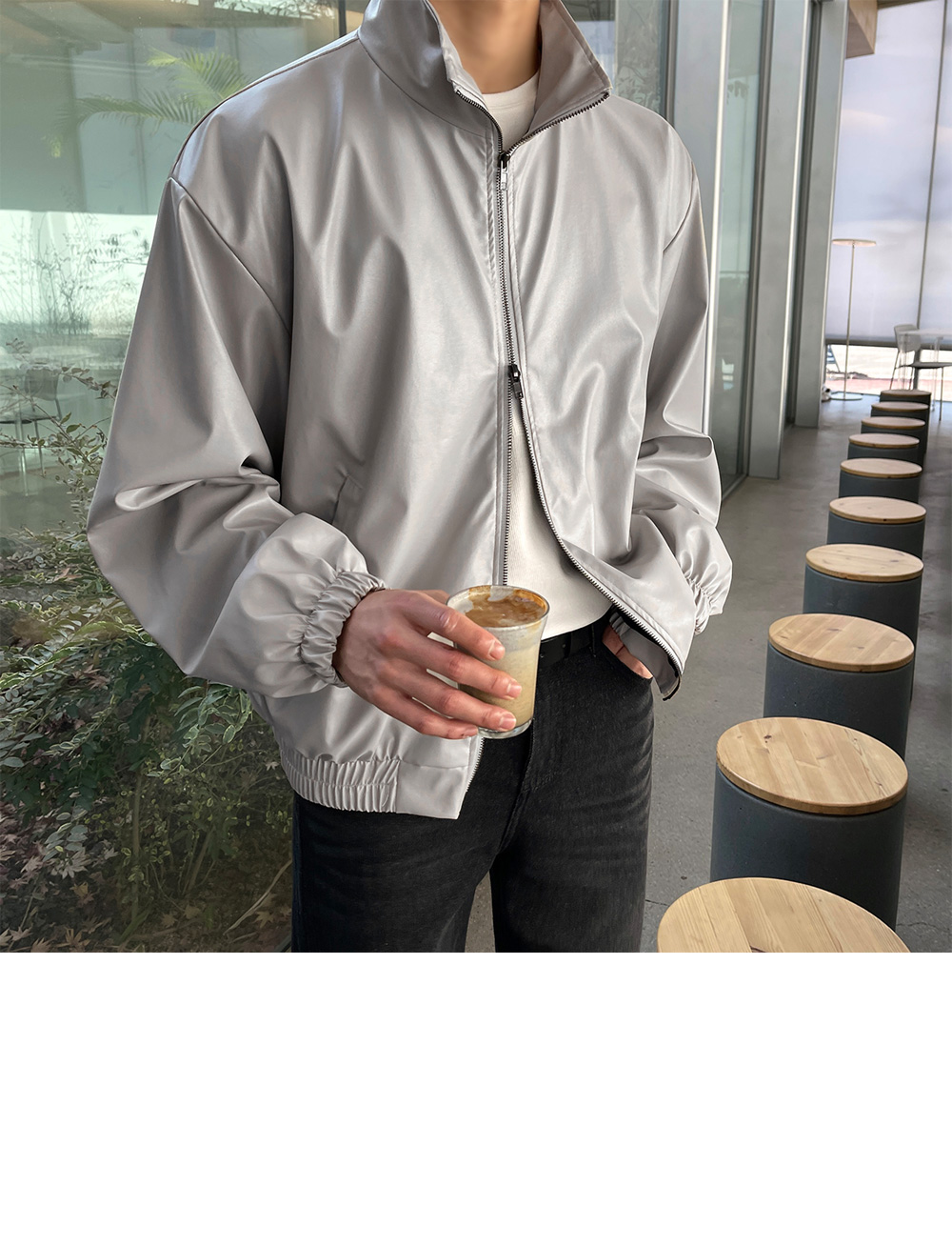 loose fit vegan leather two-way jacket L~XL(95 to 105)