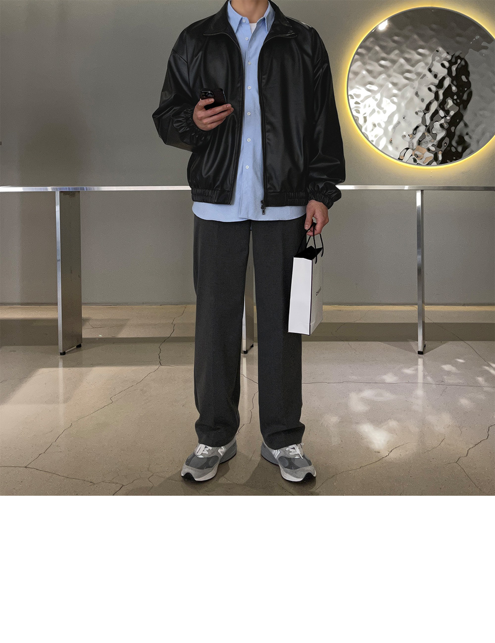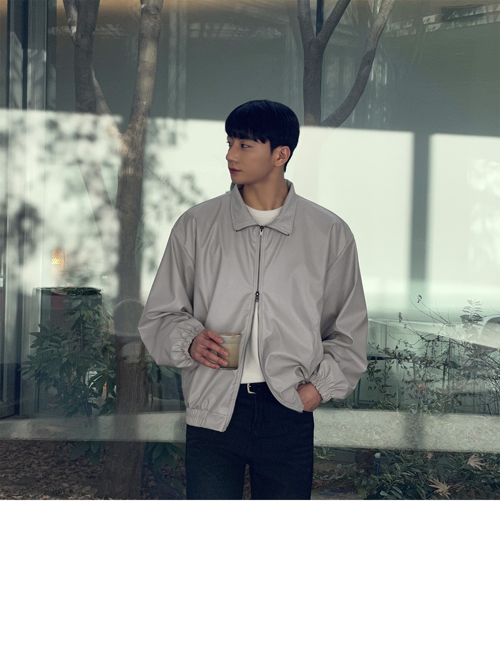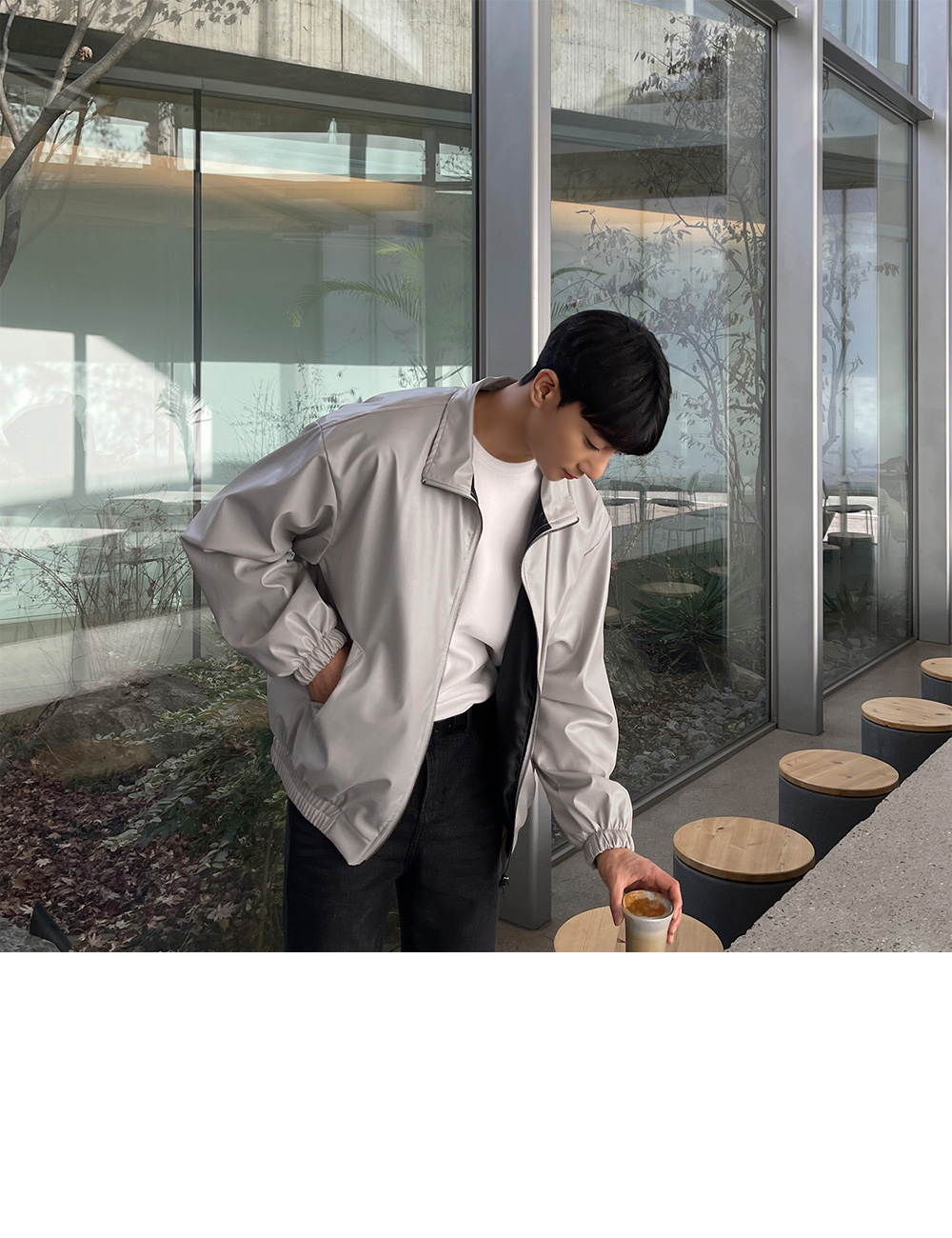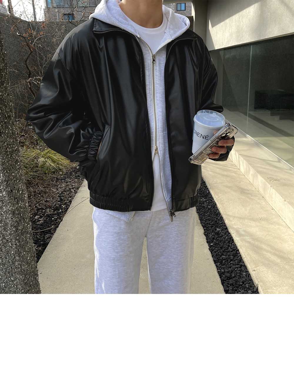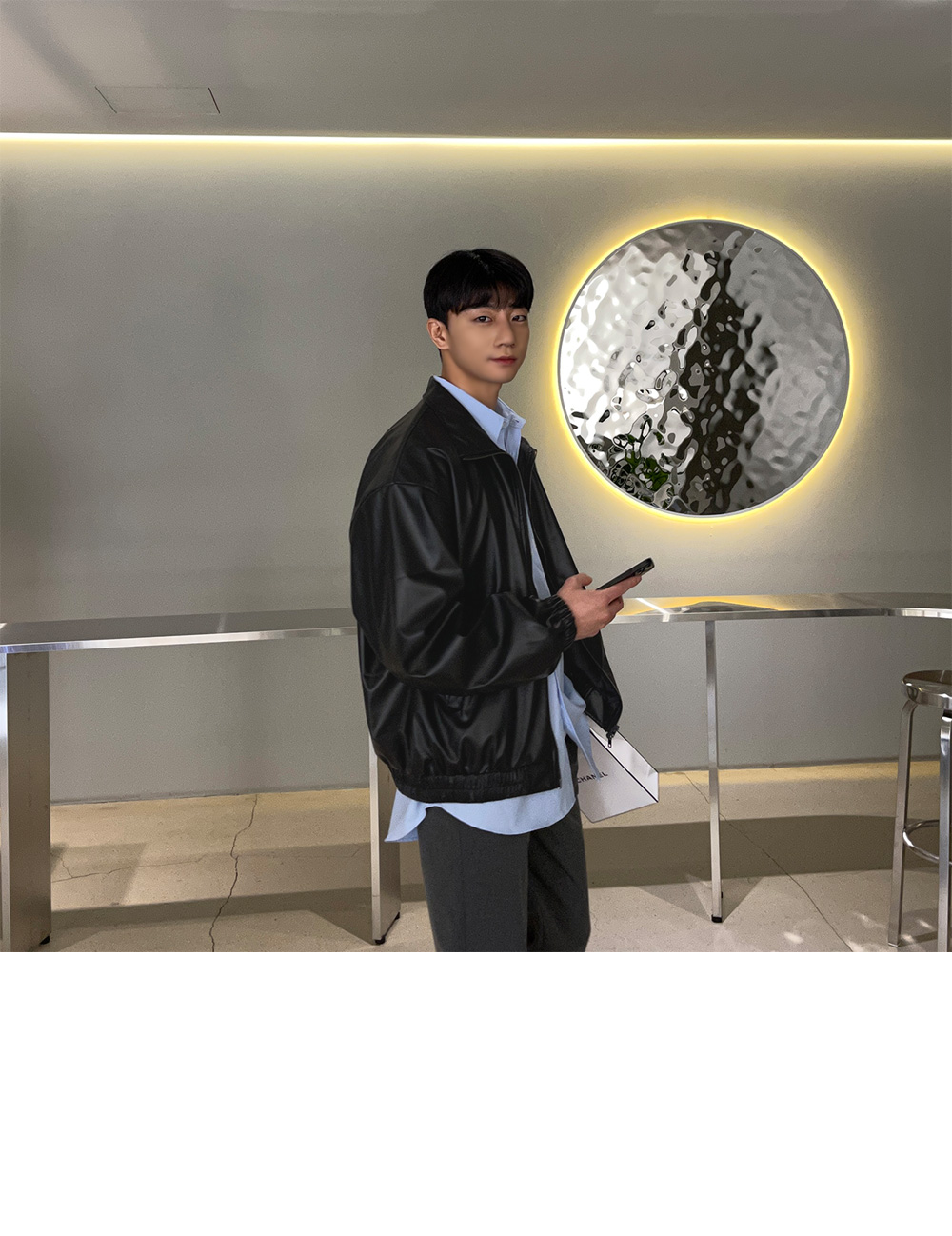 loose fit vegan leather two-way jacket L~XL(95 to 105)