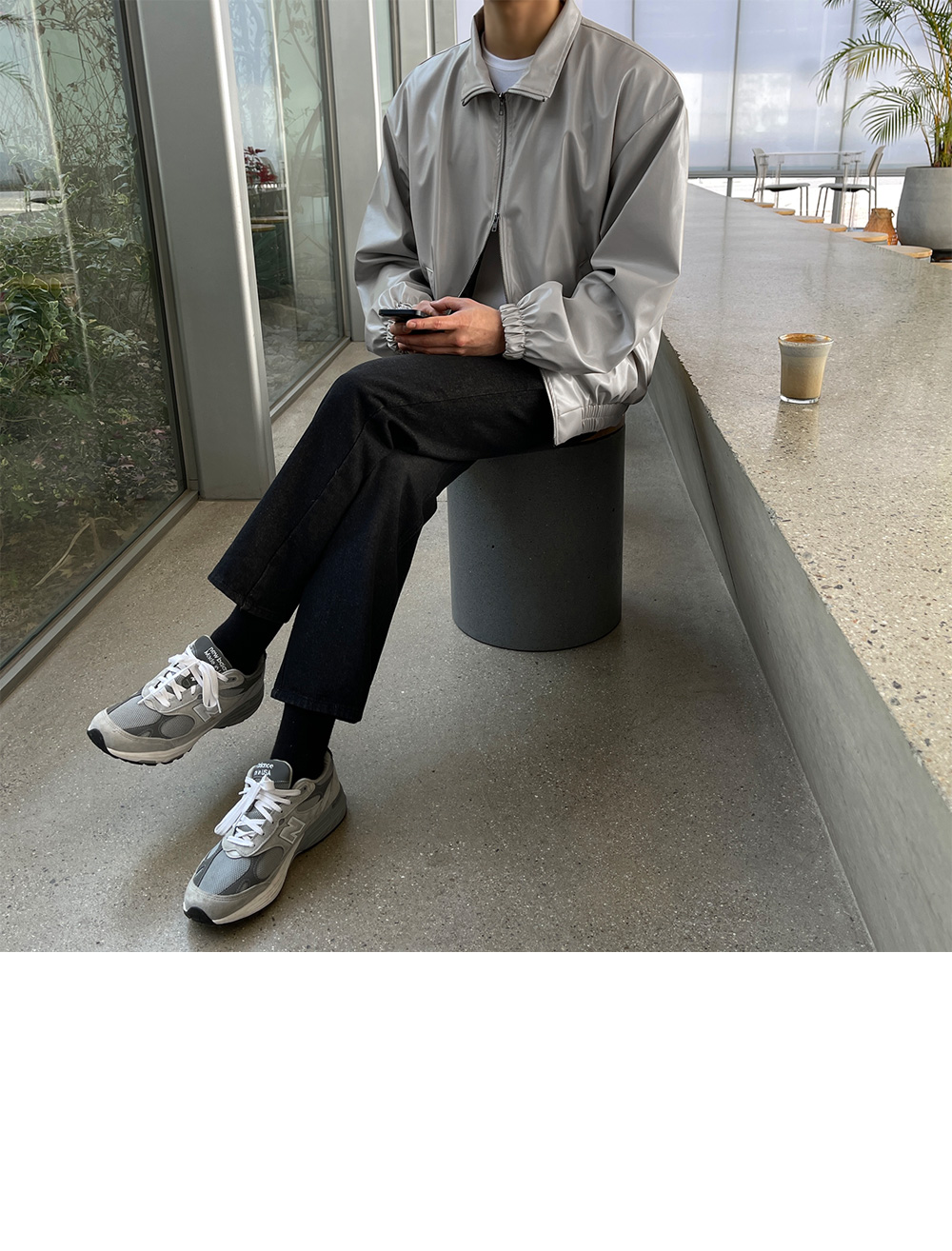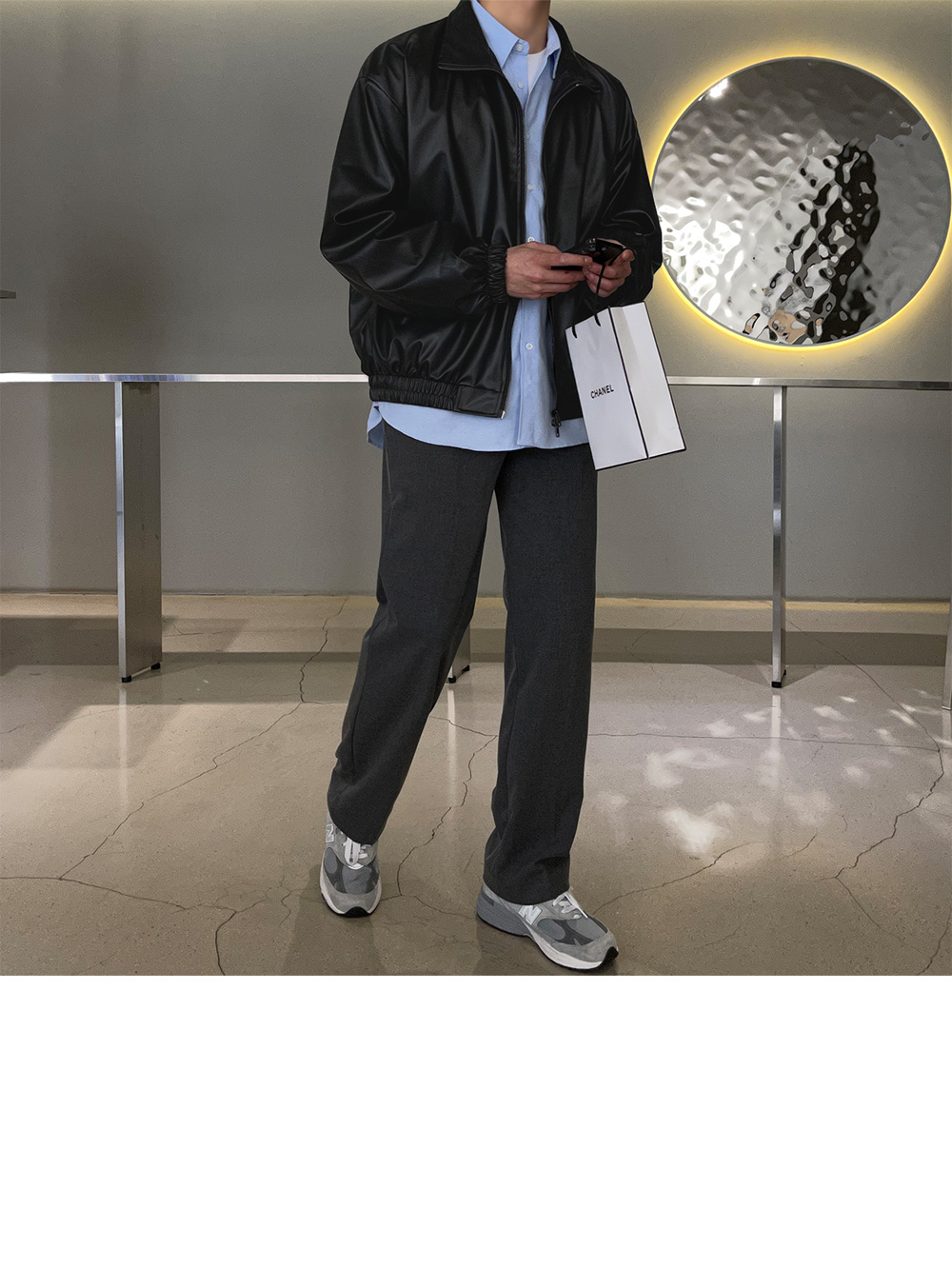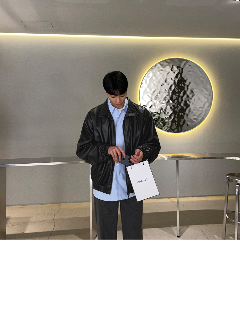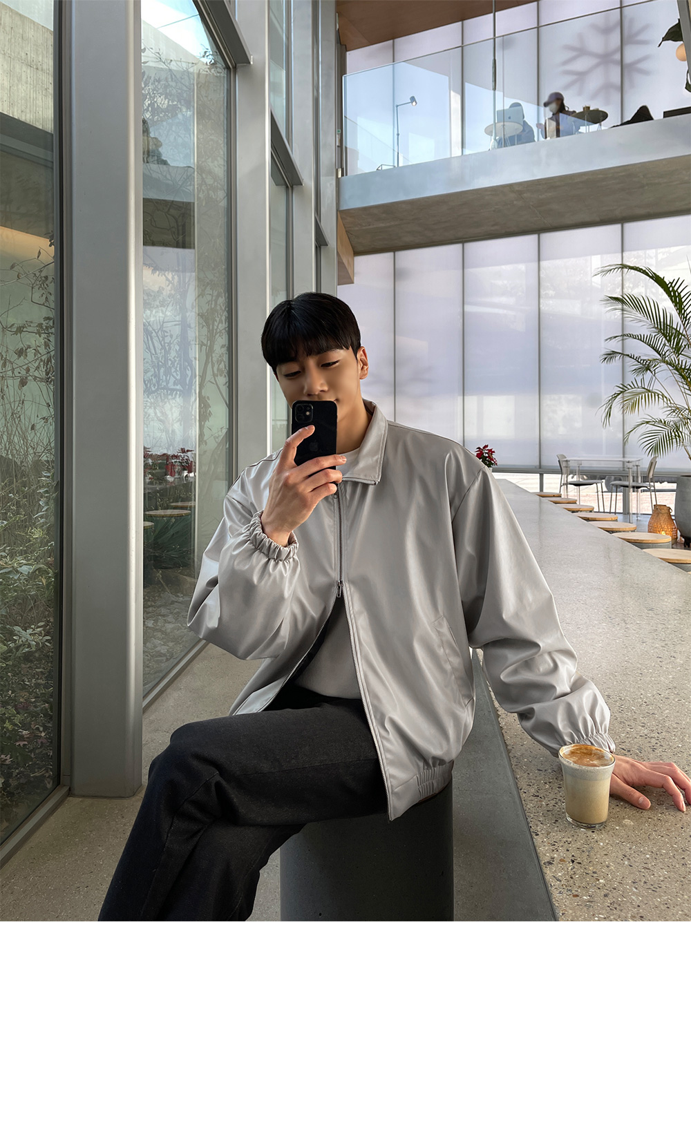 loose fit vegan leather two-way jacket L~XL(95 to 105)