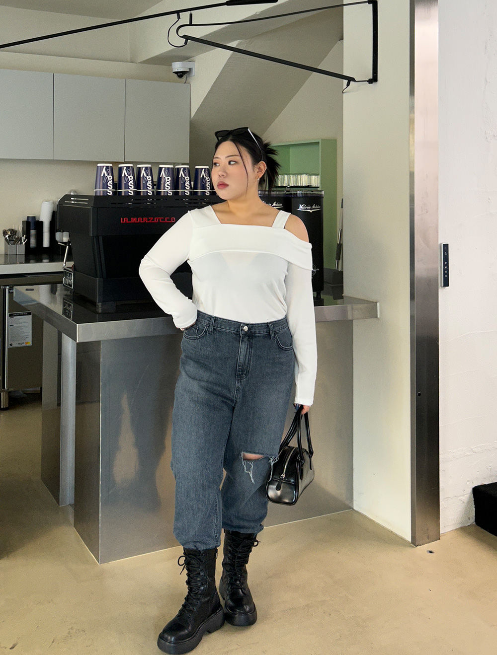 모래 시계형 체형입니다.Hourglass body shape