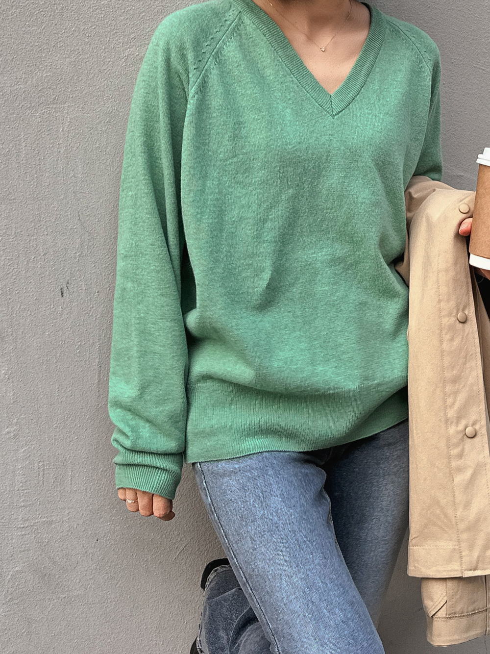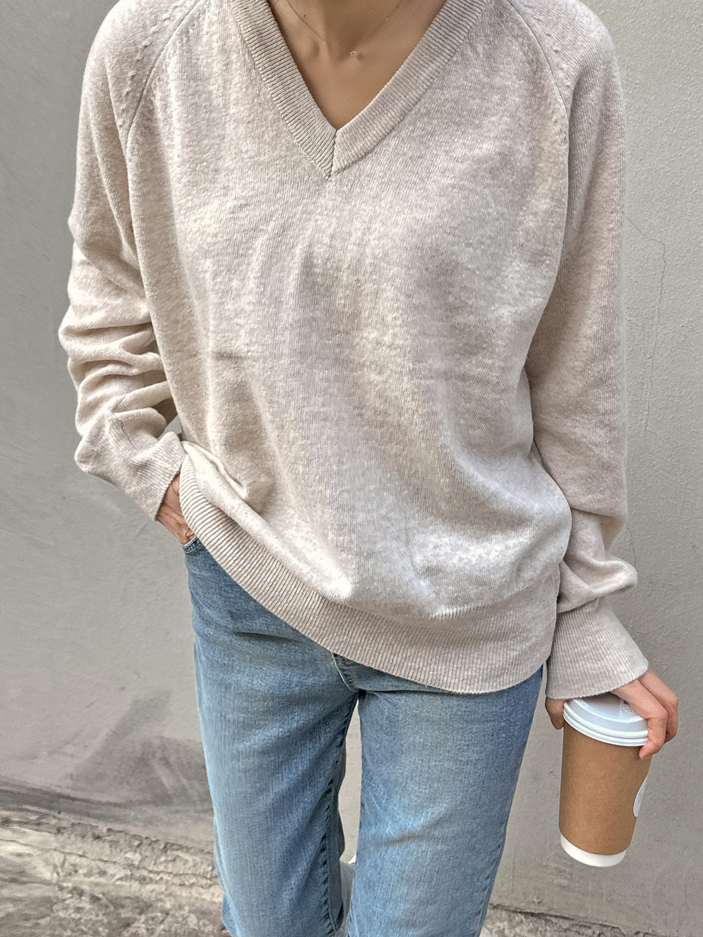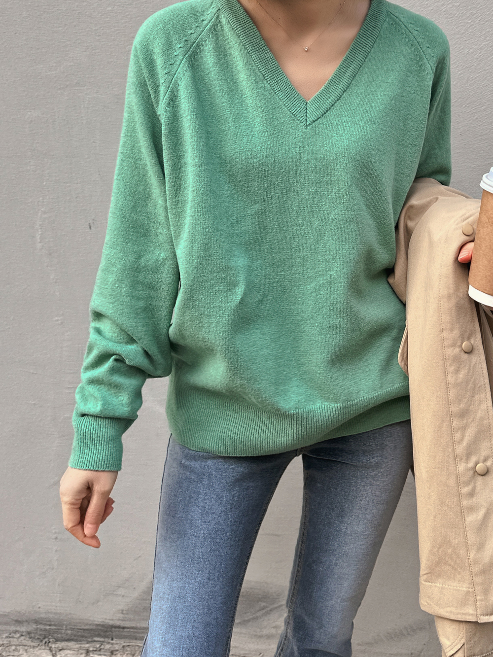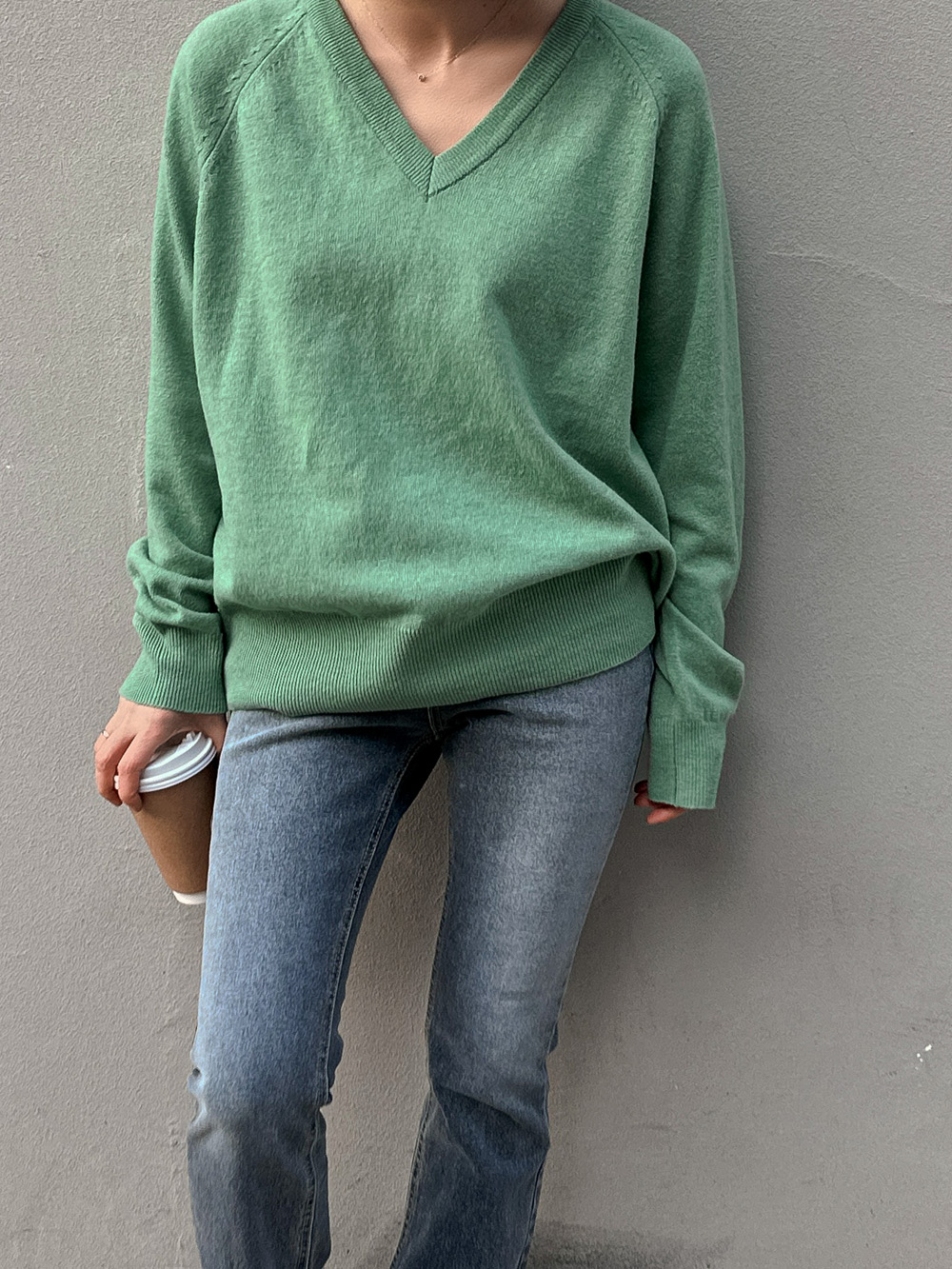 Sol Basic V-Neck Knit Tee-4color, refreshing! Warm Spring Knit Tea - Style Tea Bar