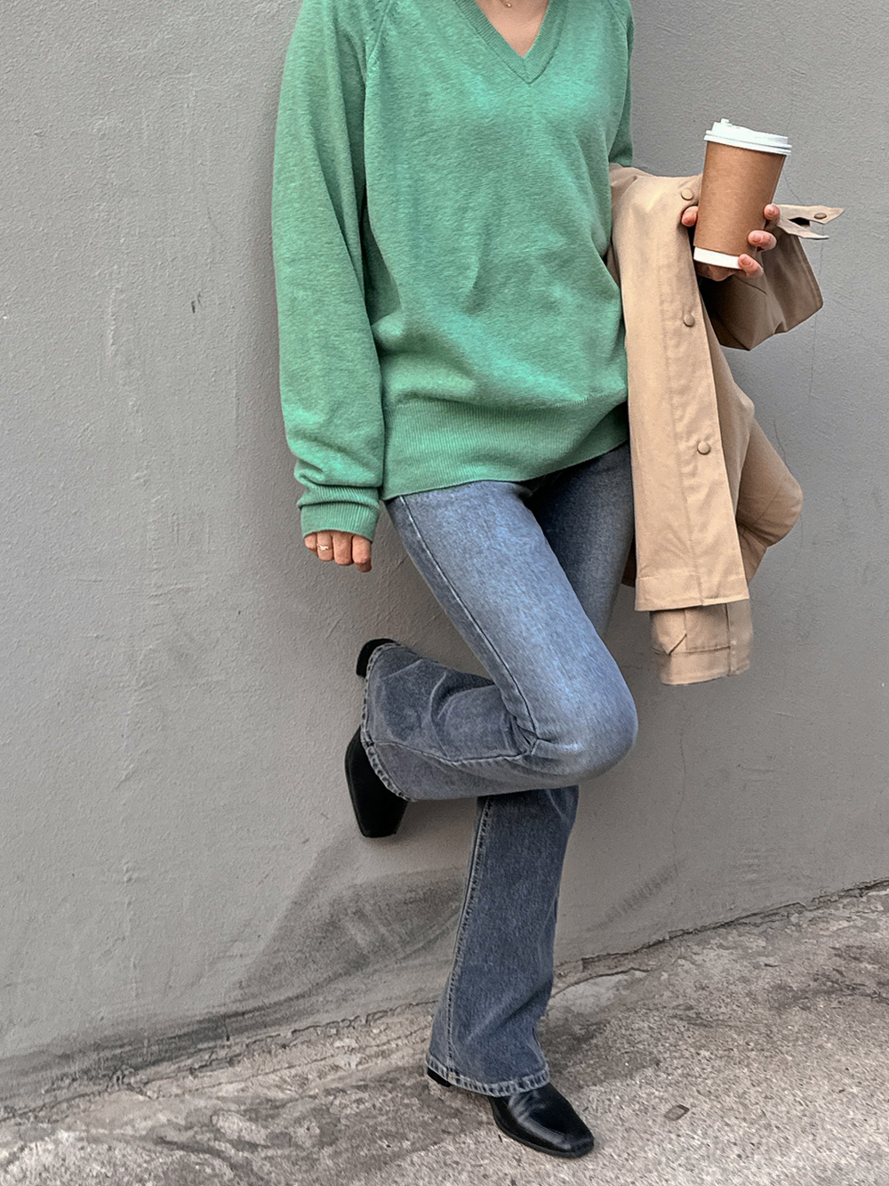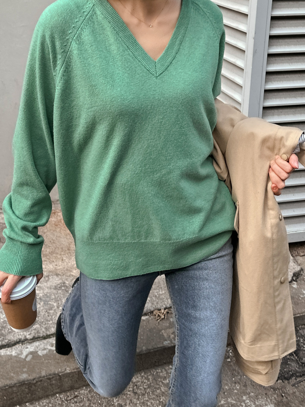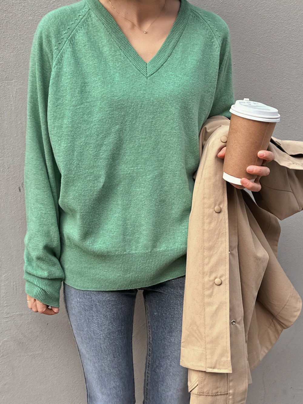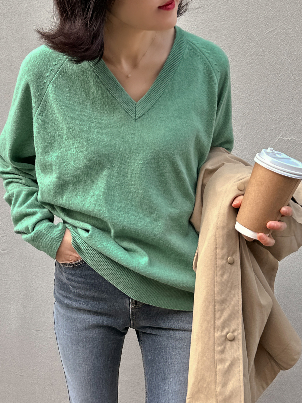 Sol Basic V-Neck Knit Tee-4color, refreshing! Warm Spring Knit Tea - Style Tea Bar