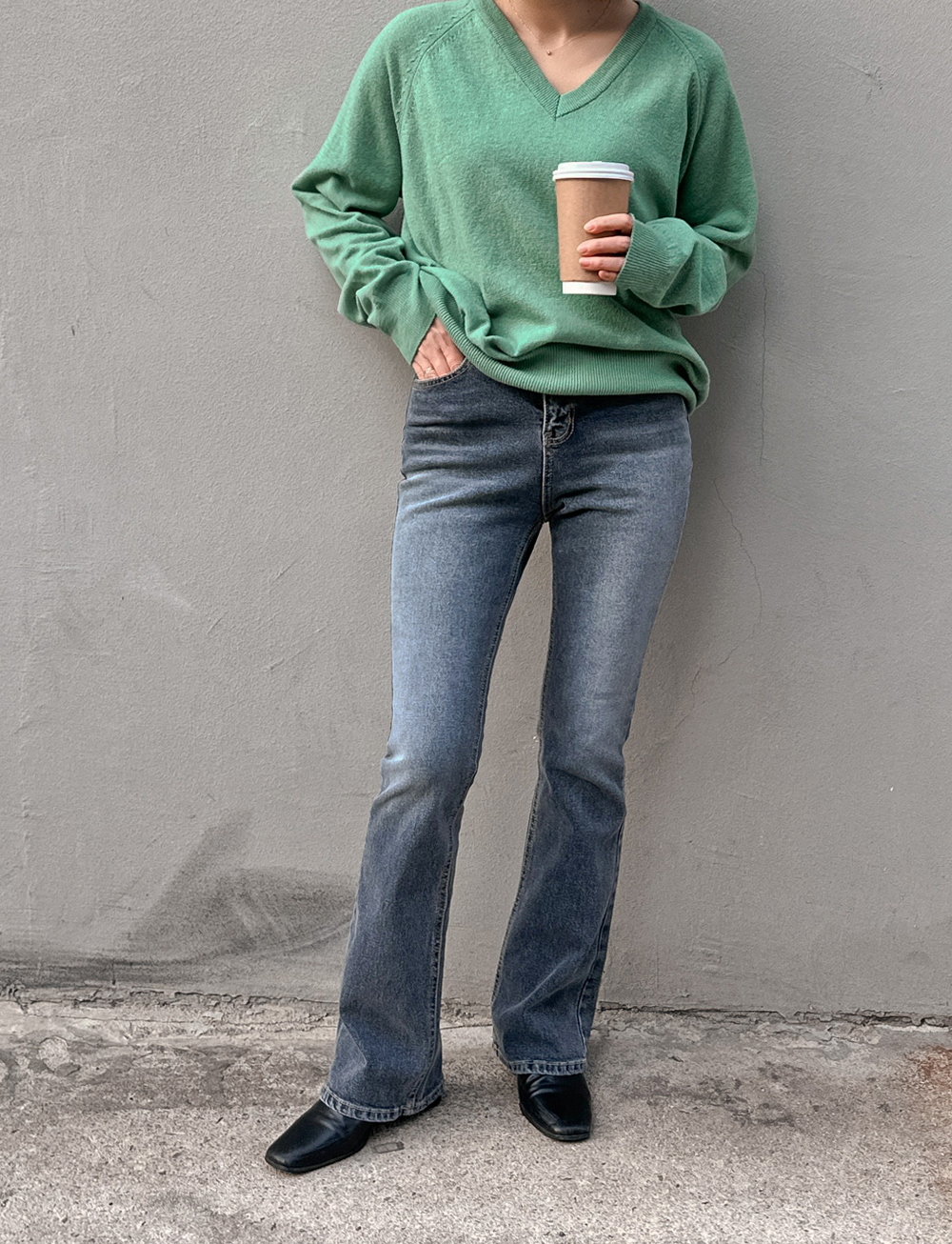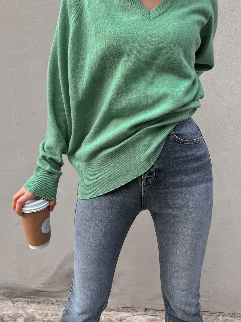 #쏠베이직 브이넥 니트티