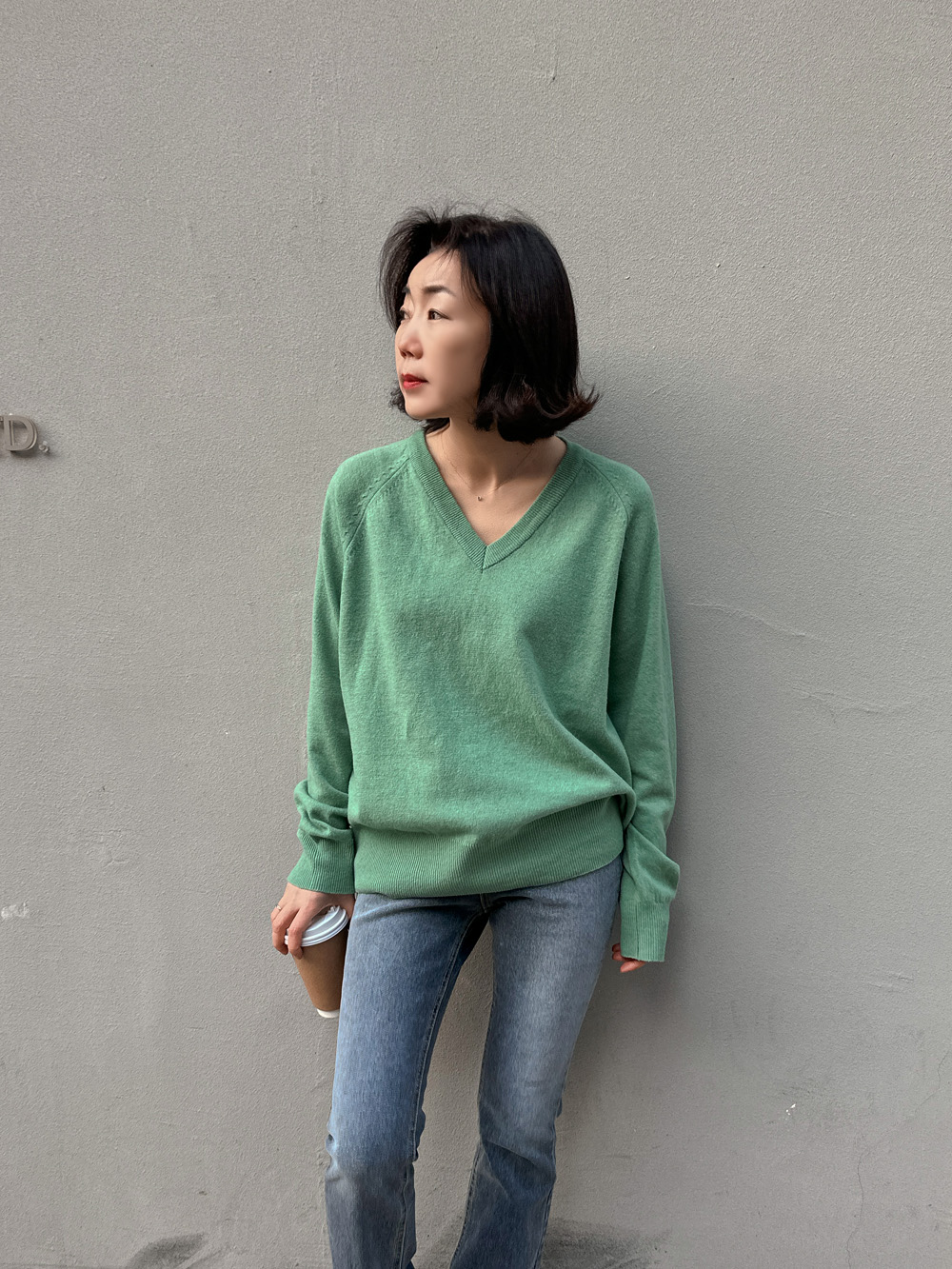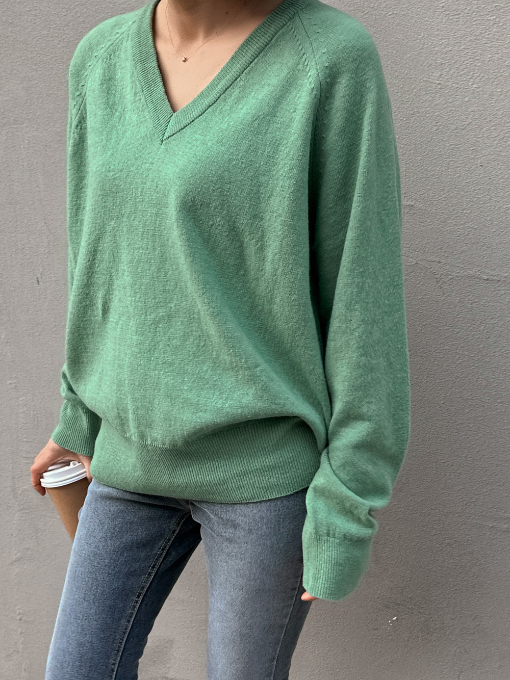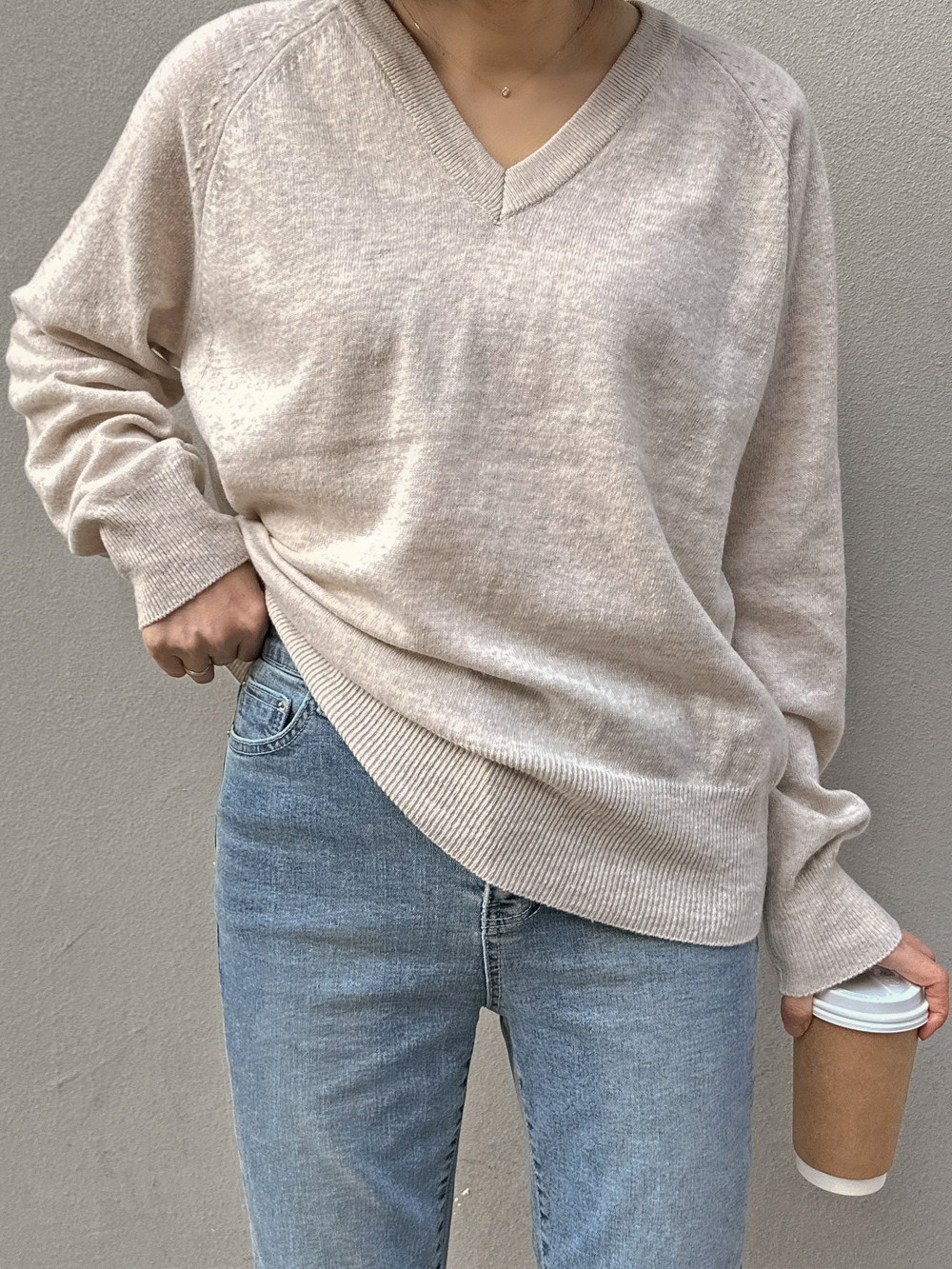 이뿌게 나온 늘어짐 없는 심플 브이넥
