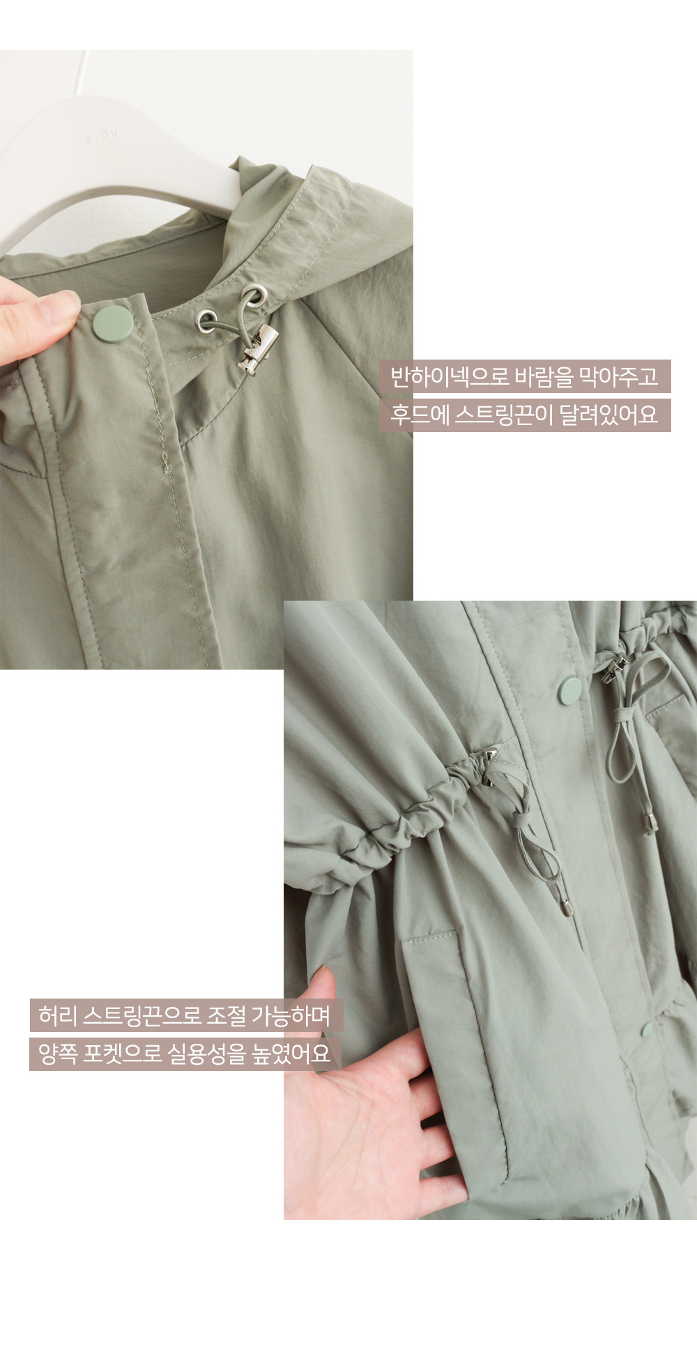 후드가 더해진 야상 점퍼 디자인으로