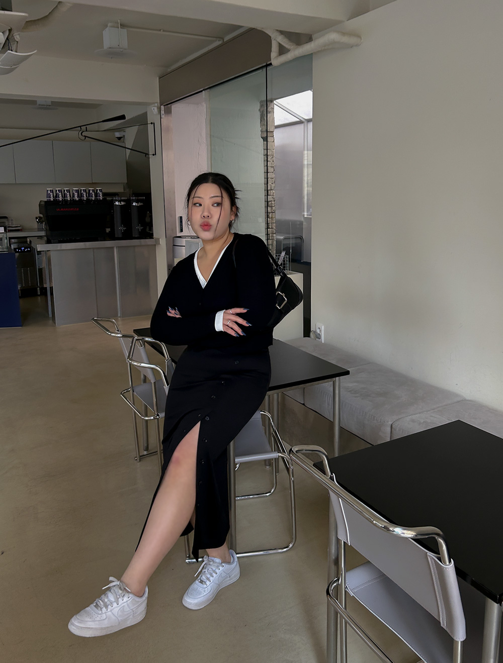 모래 시계형 체형입니다.Hourglass body shape