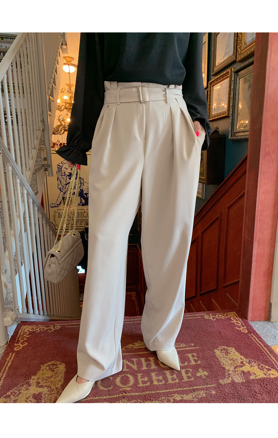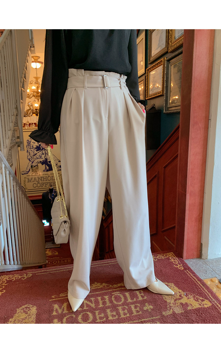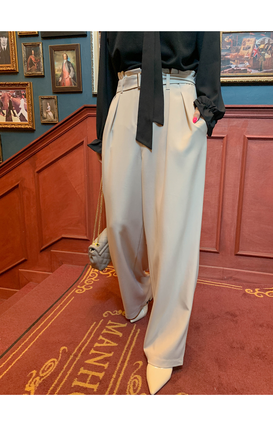 Bling belt banding wide slacks