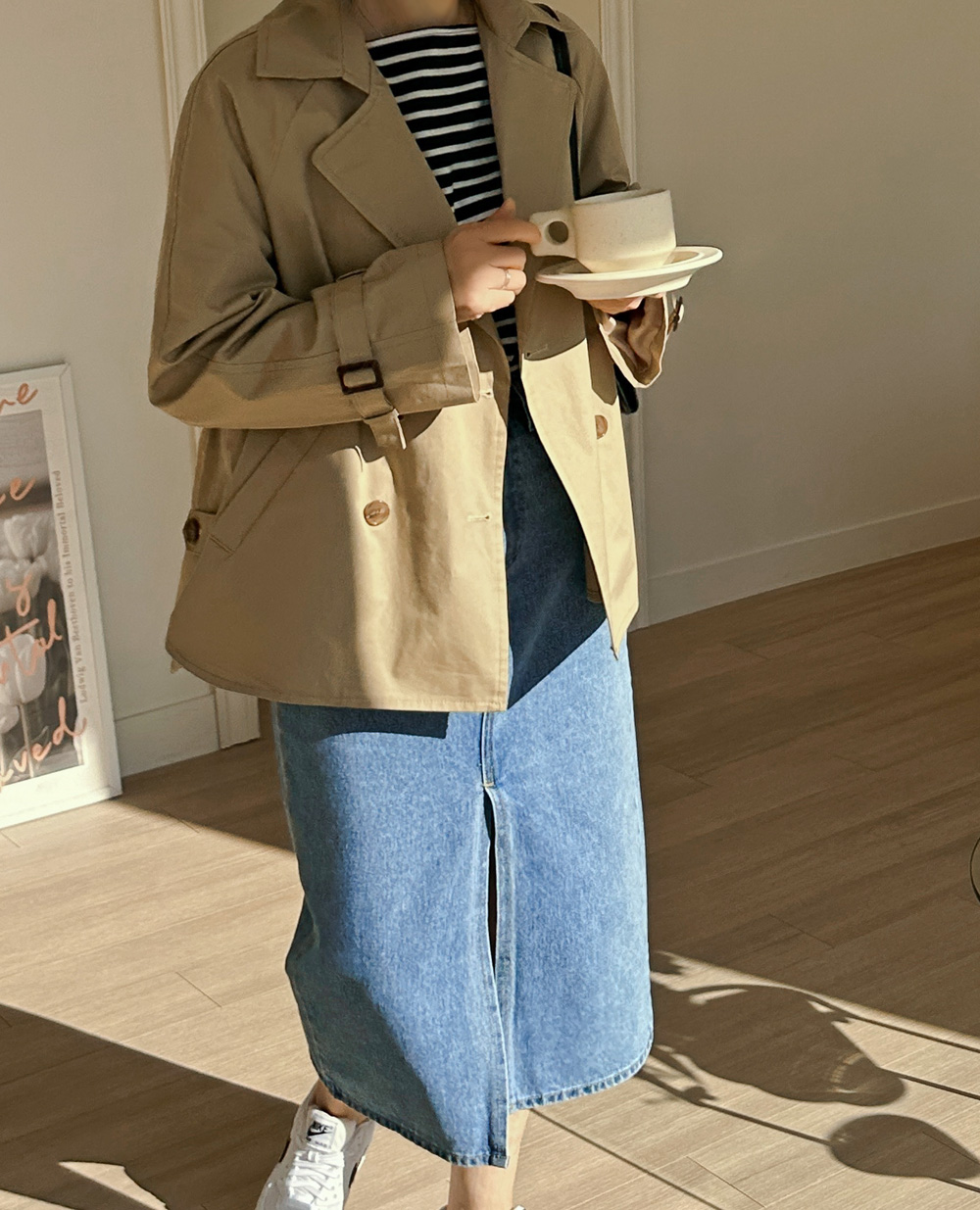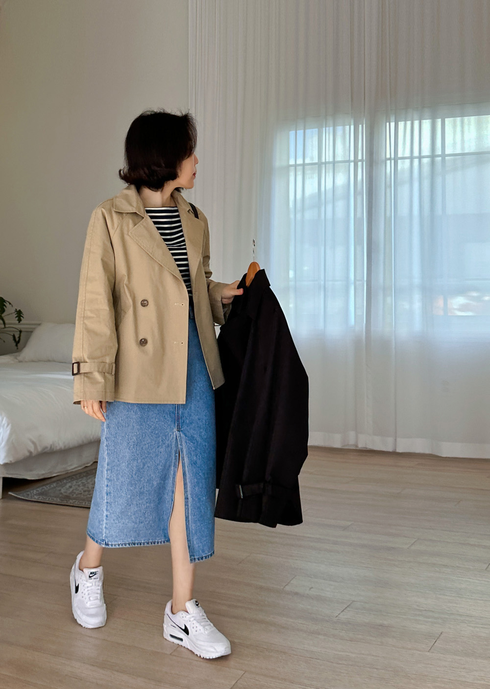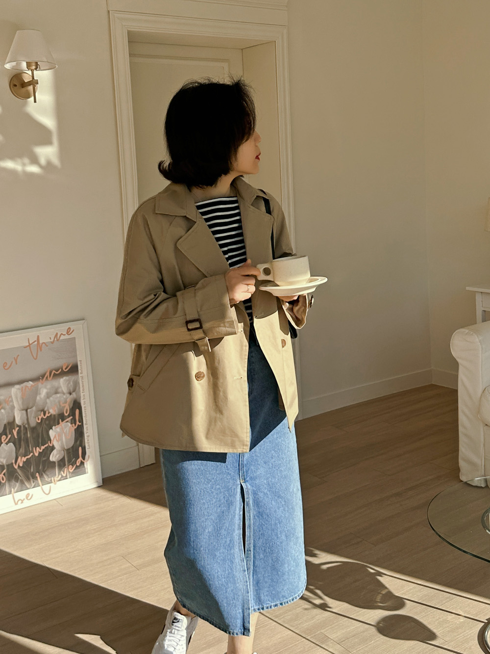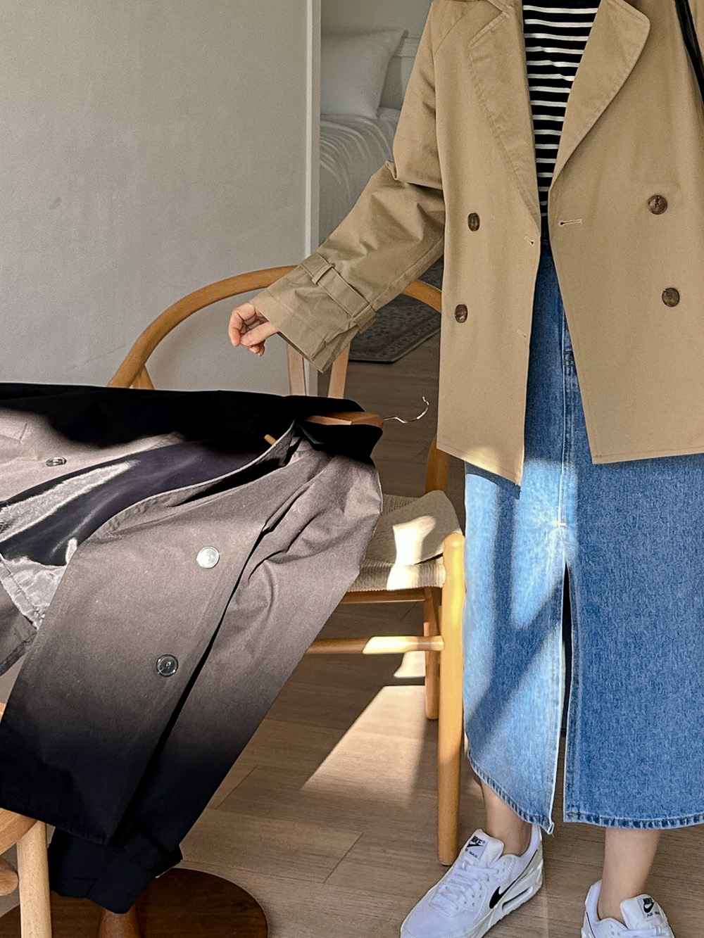 Barbara half trench jacket-2color, basic trench coat-all materials and details are well taken care of. - Style Tea Bar