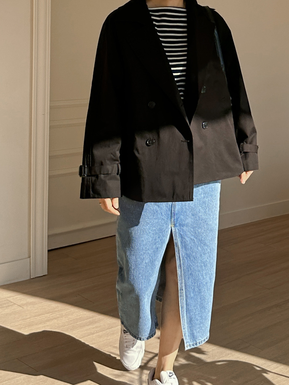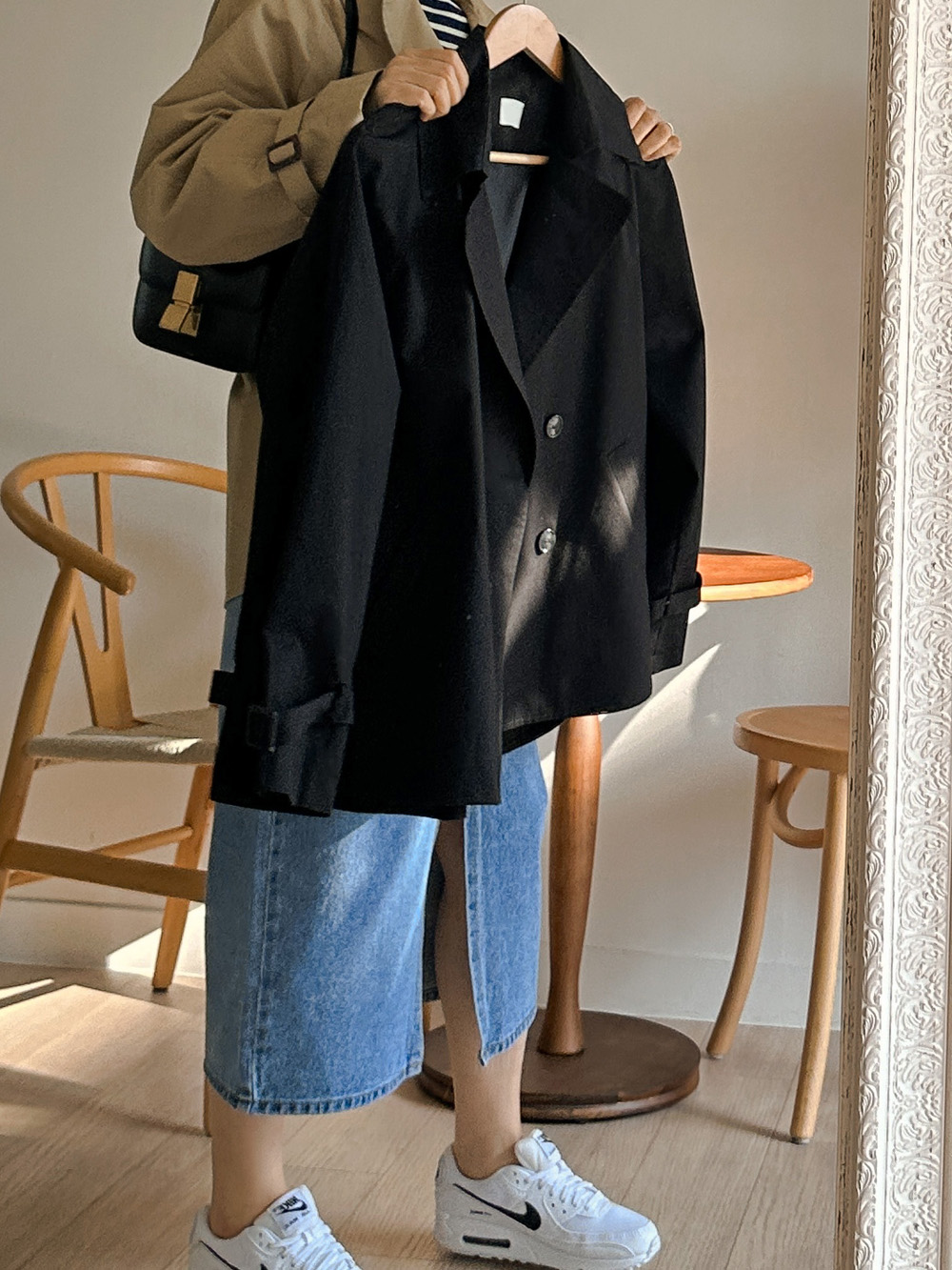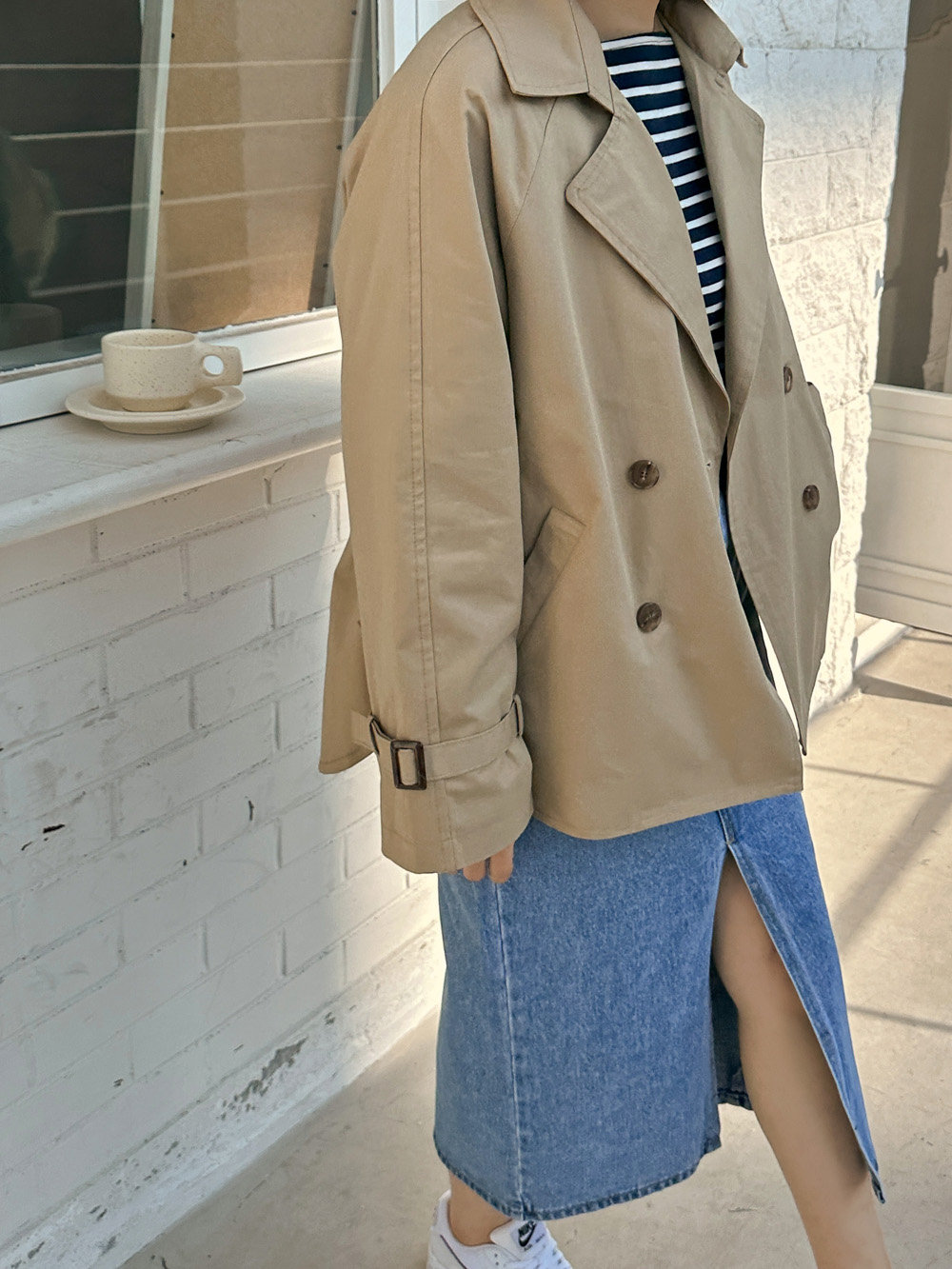 Barbara half trench jacket-2color, basic trench coat-all materials and details are well taken care of. - Style Tea Bar
