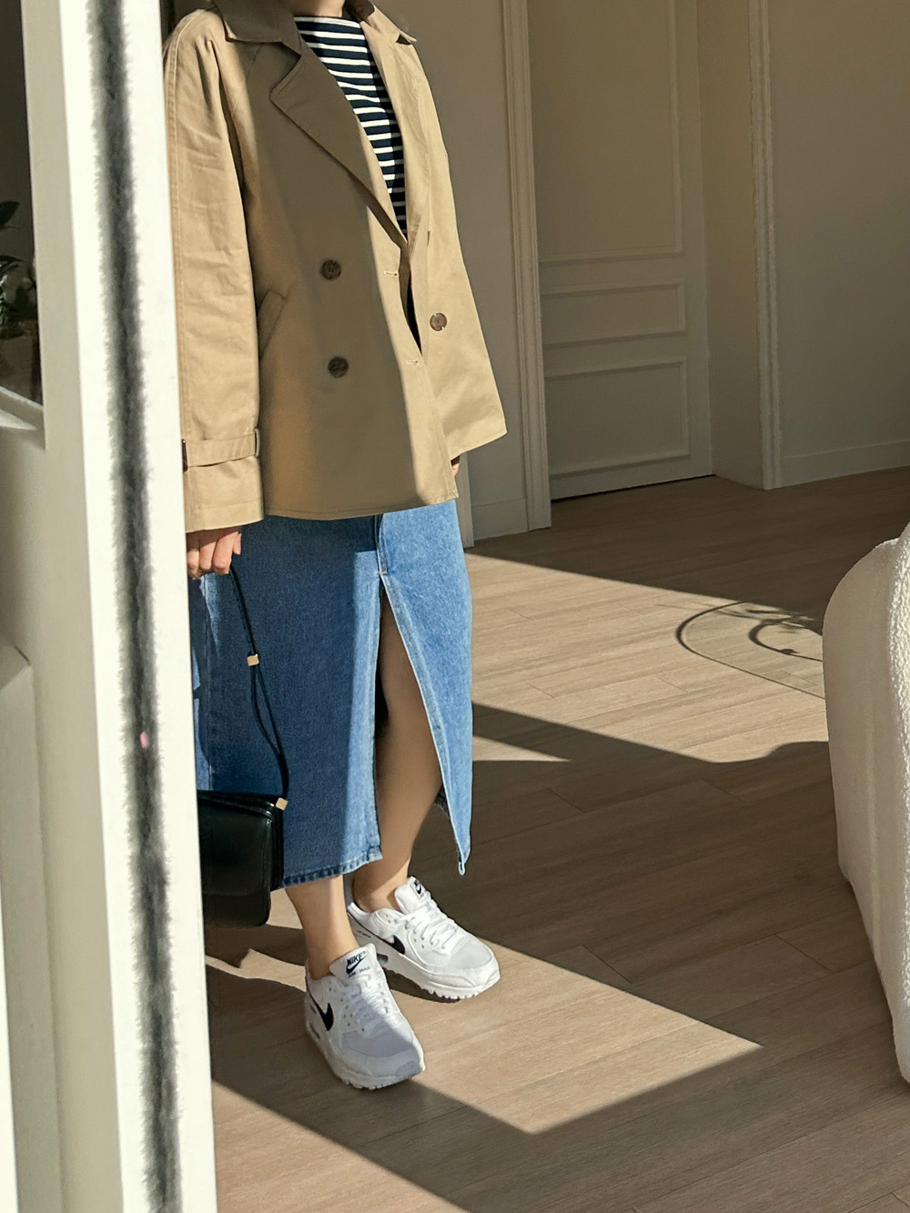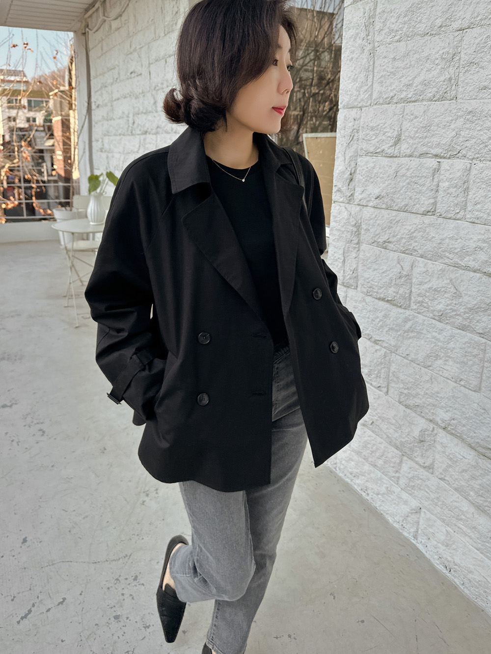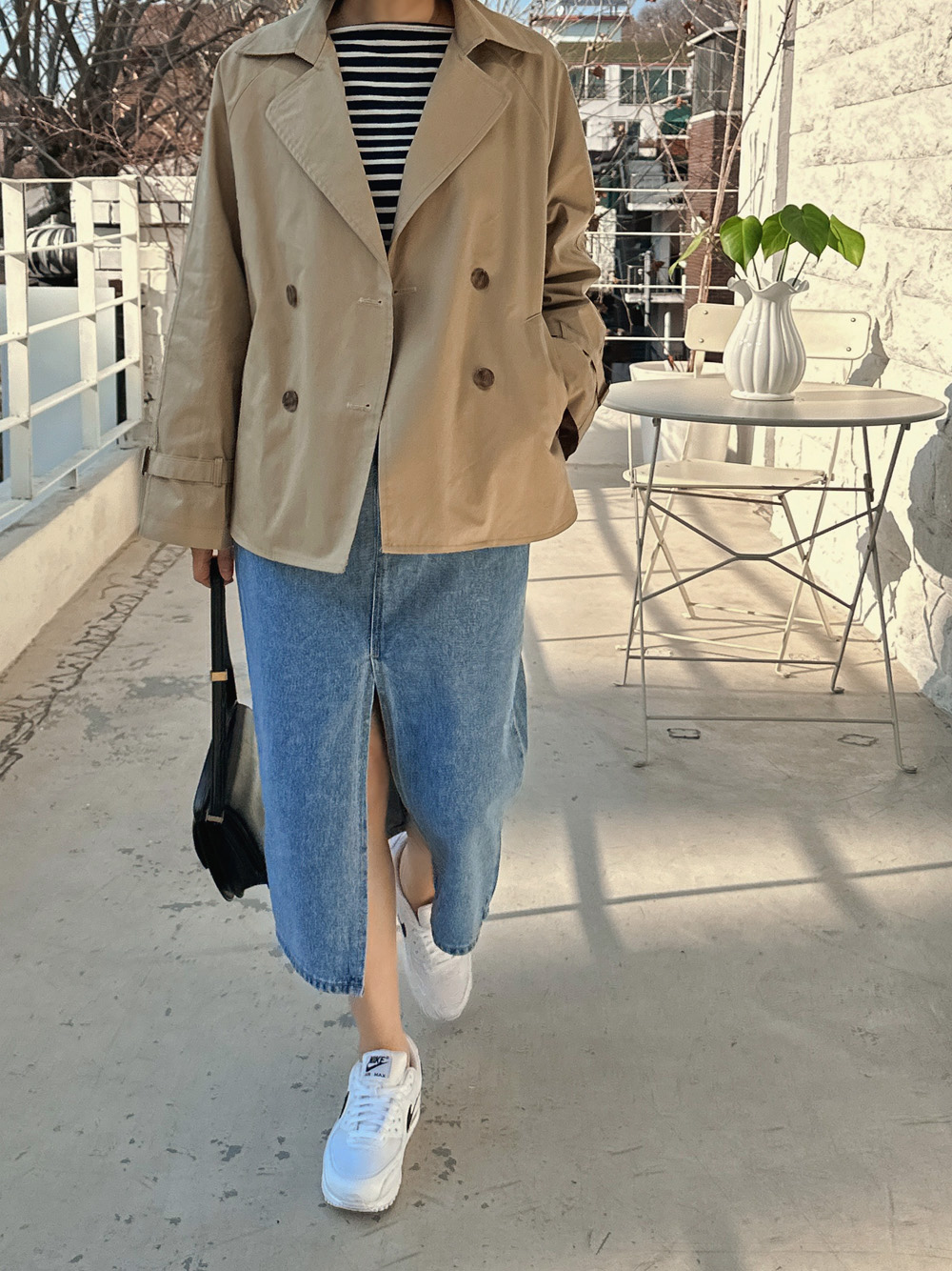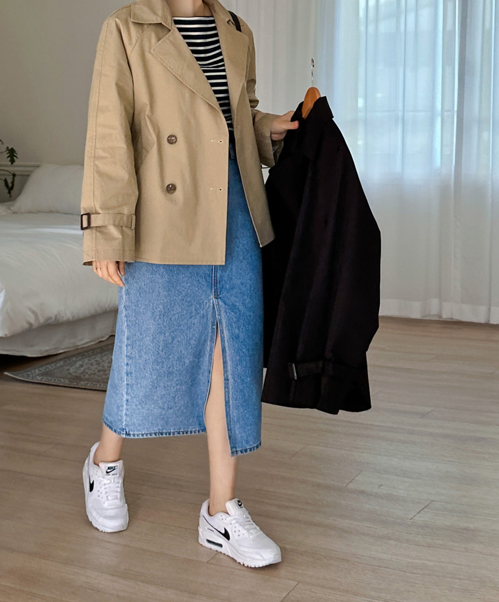 Barbara half trench jacket-2color, basic trench coat-all materials and details are well taken care of. - Style Tea Bar