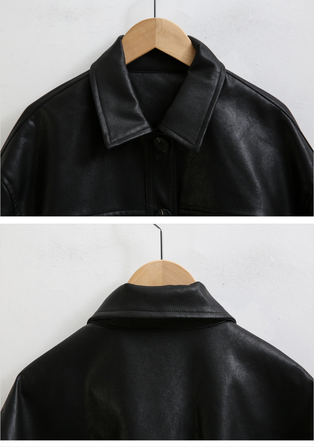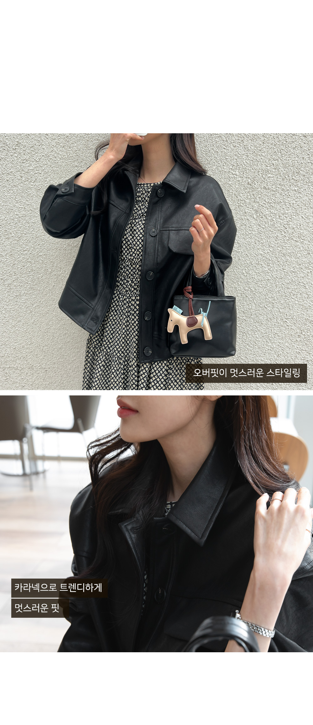 레더자켓으로 유행타지않는 소재감, 깔끔한 디자인의 카라넥이