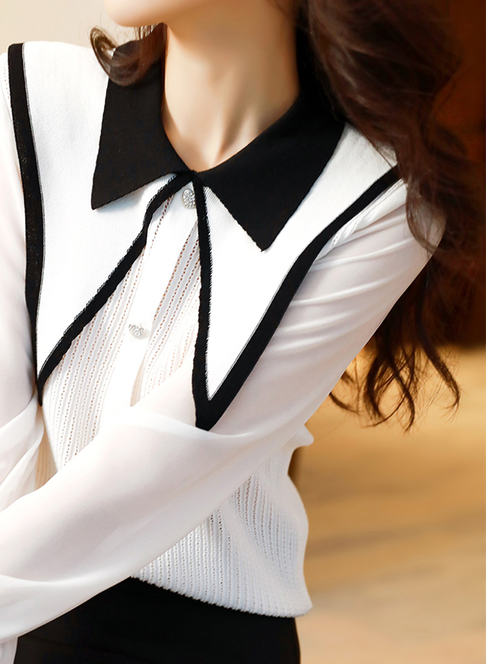 국내상품 / 샤이나 카라 오피스 니트블라우스