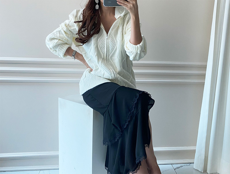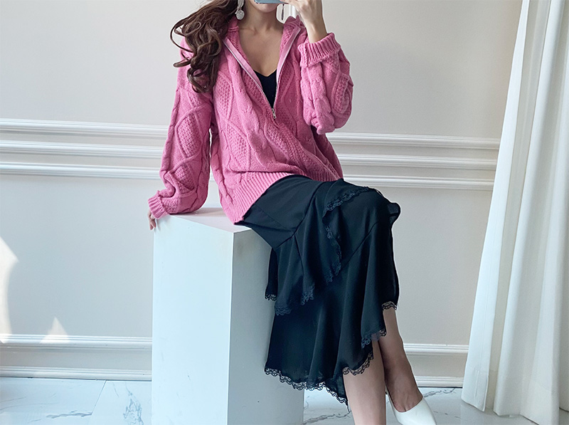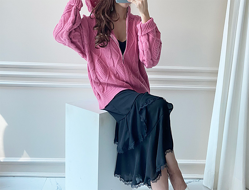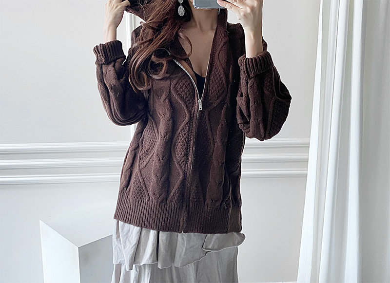 국내상품 / 레이든 집업 후드 니트 가디건 점퍼